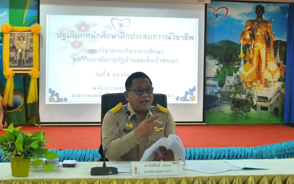 ผอ.สพป.ชุมพร เขต 1 ปฐมนิเทศและกล่าวต้อนรับนักศึกษาปริญญาโท สาขาวิชาการบริหารการศึกษา มหาวิทยาลัยราชภัฏบ้านสมเด็จเจ้าพระยา จำนวน 32 คน