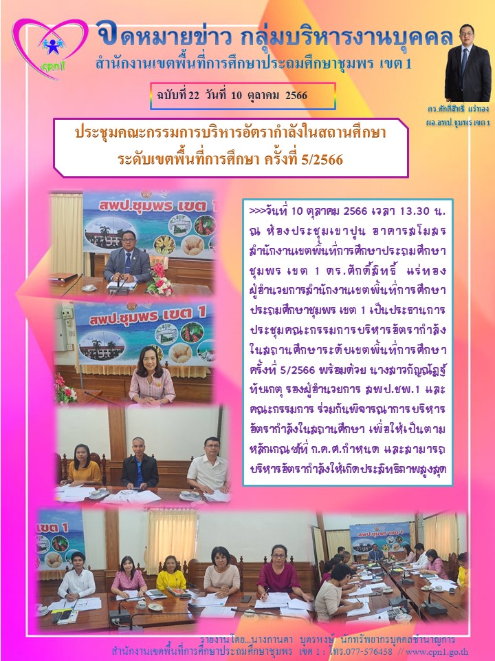 ประชุมคณะกรรมการบริหารอัตรากำลังในสถานศึกษา ระดับเขตพื้นที่การศึกษา ครั้งที่ 5/2566 10 ตุลาคม 256610 ตุลาคม 2023 กลุ่มบริหารงานบุคคล สพป.ชพ.1 ข่าวและกิจกรรม สพป.ชพ.1, ข่าวและกิจกรรมกลุ่มบริหารงานบุคคล FacebookFacebookXXLINELine กลุ่มบริหารงานบุคคล สพป.ชพ.1