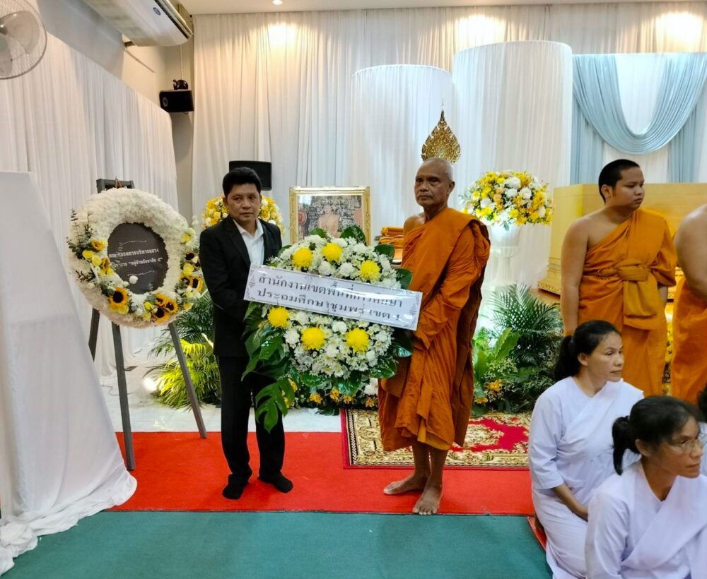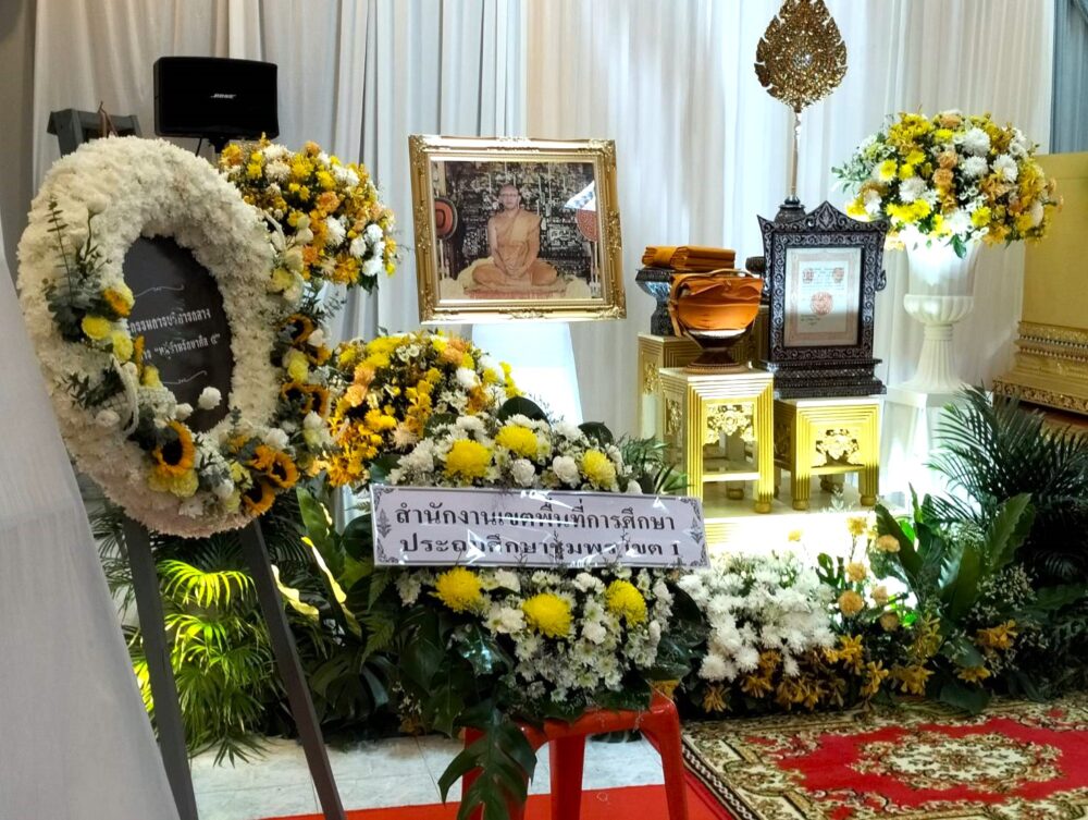 สพป.ชุมพร เขต 1 วางหรีดเคารพศพ พระเทพมงคลกวี (เสน่ห์ ฐานยุตฺโต ป.ธ.1) อดีตเจ้าอาวาสวัดโพธิการาม อดีตเจ้าคณะธรรมยุติจังหวัดชุมพร