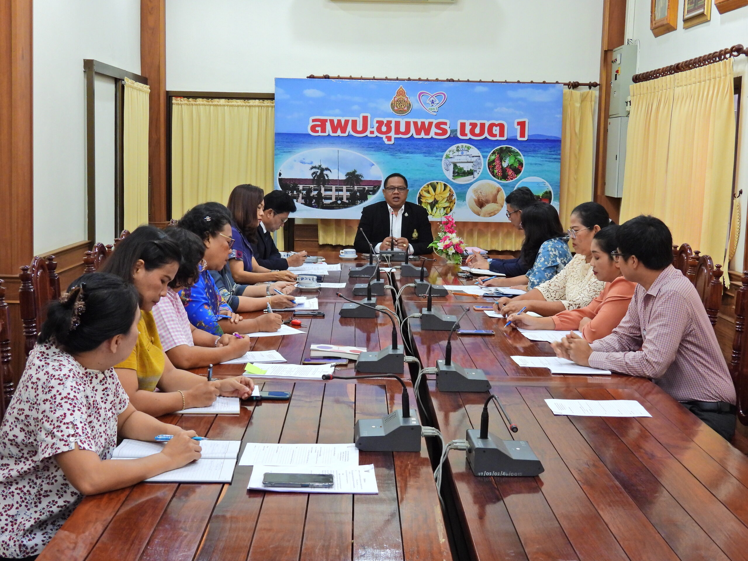 >> ดร.ศักดิ์สิทธิ์ แร่ทอง ผู้อำนวยการสำนักงานเขตพื้นที่การศึกษาประถมศึกษาชุมพร เขต 1 พร้อมด้วย นายเสรี พรหมฤทธิ์ นางสาวกัญณัฏฐ์ ทับเกตุ นายบัญชร พันธุ์ชัยเพชร รองผู้อำนวยการสำนักงานเขตพื้นที่การศึกษาประถมศึกษาชุมพร เขต 1 ผู้อำนวยการทุกกลุ่ม/หน่วย และผู้ที่เกี่ยวข้อง ร่วมรับชมรายการ พฤหัสเช้า ข่าวสพฐ. ครั้งที่ 1/2566 เพื่อร่วมรับฟังข้อราชการและแนวปฏิบัติ การดำเนินการความเคลื่อนไหวต่างๆ จาก สพฐ. ต่อจากนั้น ดร.ศักดิ์สิทธิ์ แร่ทอง ผู้อำนวยการสำนักงานเขตพื้นที่การศึกษาประถมศึกษาชุมพร เขต 1 ได้เป็นประธานดำเนินการประชุมชี้แจงปรึกษาหารือข้อราชการ ภารกิจงานของแต่ละกลุ่มกับผู้อำนวยการกลุ่มทุกกลุ่ม/หน่วย เพื่อให้การดำเนินงานขับเคลื่อนเป็นไปอย่างต่อเนื่องบรรลุตามเป้าหมาย ณ ห้องประชุมเขาปูน อาคารสโมสร สำนักงานเขตพื้นที่การศึกษาประถมศึกษาชุมพร เขต 1