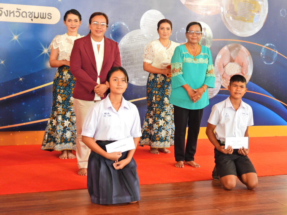 นักเรียนที่ได้รับทุนในครั้งนี้ได้แก่นักเรียนในสังกัด สพป.ชุมพร เขต1,สพม.สุราษฏร์ธานี ชุมพร และอาชีวะศึกษา มีจำนวน 125 ทุน ทุนเรียงความเรื่องความดี 12 ทุน ในการนี้มี ดร.ศักดิ์สิทธ์ แร่ทอง ผอ.สพป.ชุมพร เขต 1 นางสาวกัญณัฏฐ์ ทับเกตุ, นายบัญชร พันธุ์ชัยเพชร รองผู้อำนวยการสำนักงานเขตพื้นที่การศึกษาประถมศึกษาชุมพร เขต 1 ผู้บริหาร ครู ผู้ปกครอง ร่วมเป็นเกียรติในพิธีมอบทุนดังกล่าว