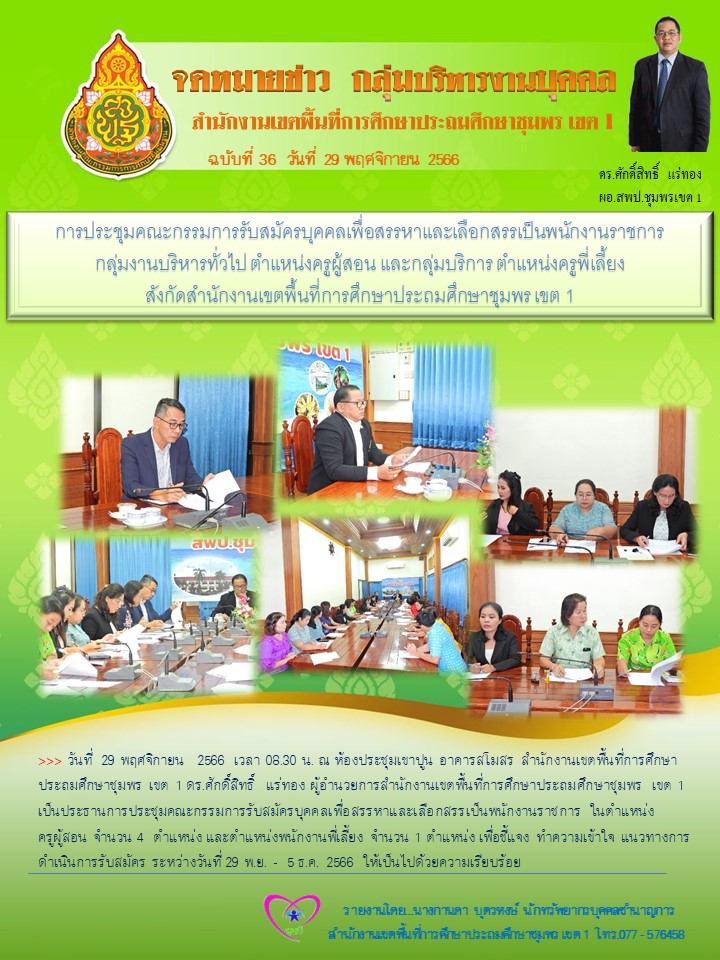 การประชุมคณะกรรมการรับสมัครบุคคลเพื่อสรรหาและเลือกสรรเป็นพนักงานราชการ กลุ่มงานบริหารทั่วไป ตำแหน่งครูผู้สอน และกลุ่มบริการ ตำแหน่งครูพี่เลี้ยง สังกัดสำนักงานเขตพื้นที่การศึกษาประถมศึกษาชุมพร เขต 1 29 พฤศจิกายน 256629 พฤศจิกายน 2023 กลุ่มบริหารงานบุคคล สพป.ชพ.1 ข่าวและกิจกรรม สพป.ชพ.1, ข่าวและกิจกรรมกลุ่มบริหารงานบุคคล FacebookFacebookXXLINELine กลุ่มบริหารงานบุคคล สพป.ชพ.1