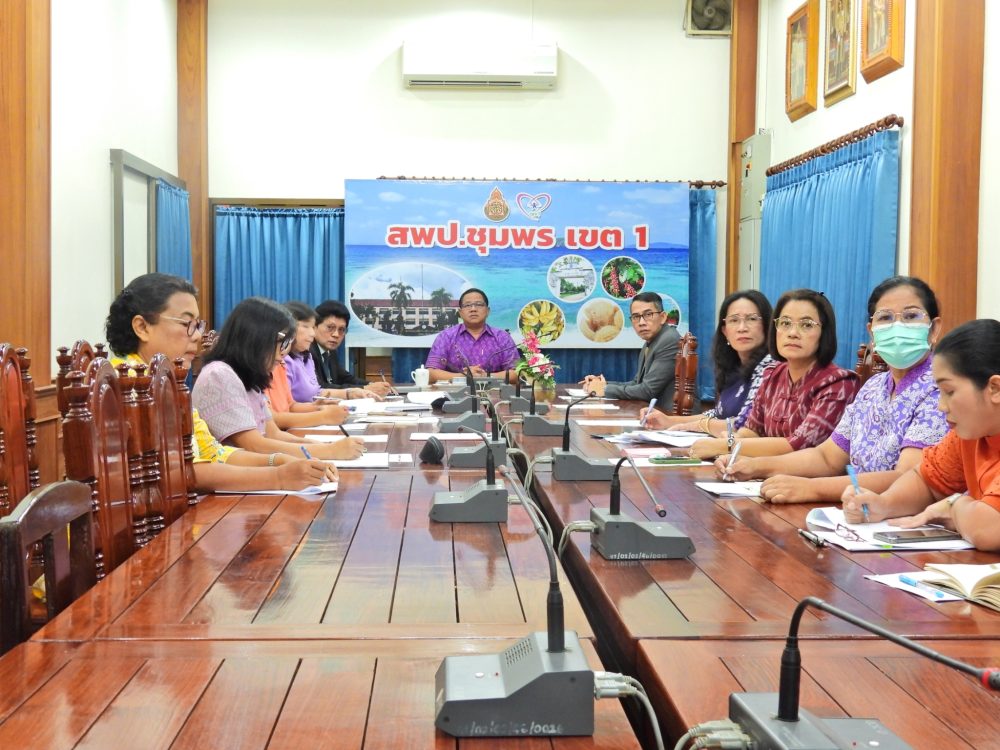 ดร.ศักดิ์สิทธิ์ แร่ทอง ผอ. สพป.ชุมพร เขต 1 พร้อมด้วย นายเสรี พรหมฤทธิ์ นายบัญชร พันธุ์ชัยเพชร รองผู้อำนวยการสำนักงานเขตพื้นที่การศึกษาประถมศึกษาชุมพร เขต 1 ผู้อำนวยการทุกกลุ่ม/หน่วย และผู้ที่เกี่ยวข้อง ร่วมรับชมรายการ พฤหัสเช้าข่าว สพฐ. ครั้งที่ 6/2566 ดร.ศักดิ์สิทธิ์ แร่ทอง ผู้อำนวยการสำนักงานเขตพื้นที่การศึกษาประถมศึกษาชุมพร เขต 1 ได้เป็นประธานดำเนินการประชุมชี้แจงปรึกษาหารือข้อราชการ ภารกิจงานของแต่ละกลุ่มกับผู้อำนวยการกลุ่มทุกกลุ่ม/หน่วย เพื่อให้การดำเนินงานขับเคลื่อนเป็นไปอย่างต่อเนื่องบรรลุตามเป้าหมาย ณ ห้องประชุมเขาปูน อาคารสโมสร