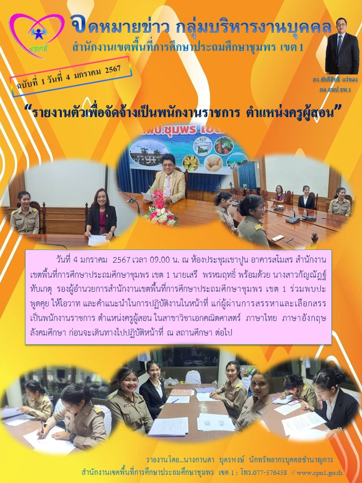 พนักงานราชการ ตำแหน่งครูผู้สอน รายงานตัวเพื่อรับการจัดจ้าง 04 มกราคม 256704 มกราคม 2024 กลุ่มบริหารงานบุคคล สพป.ชพ.1 ข่าวและกิจกรรม สพป.ชพ.1, ข่าวและกิจกรรมกลุ่มบริหารงานบุคคล FacebookFacebookXXLINELine กลุ่มบริหารงานบุคคล สพป.ชพ.1