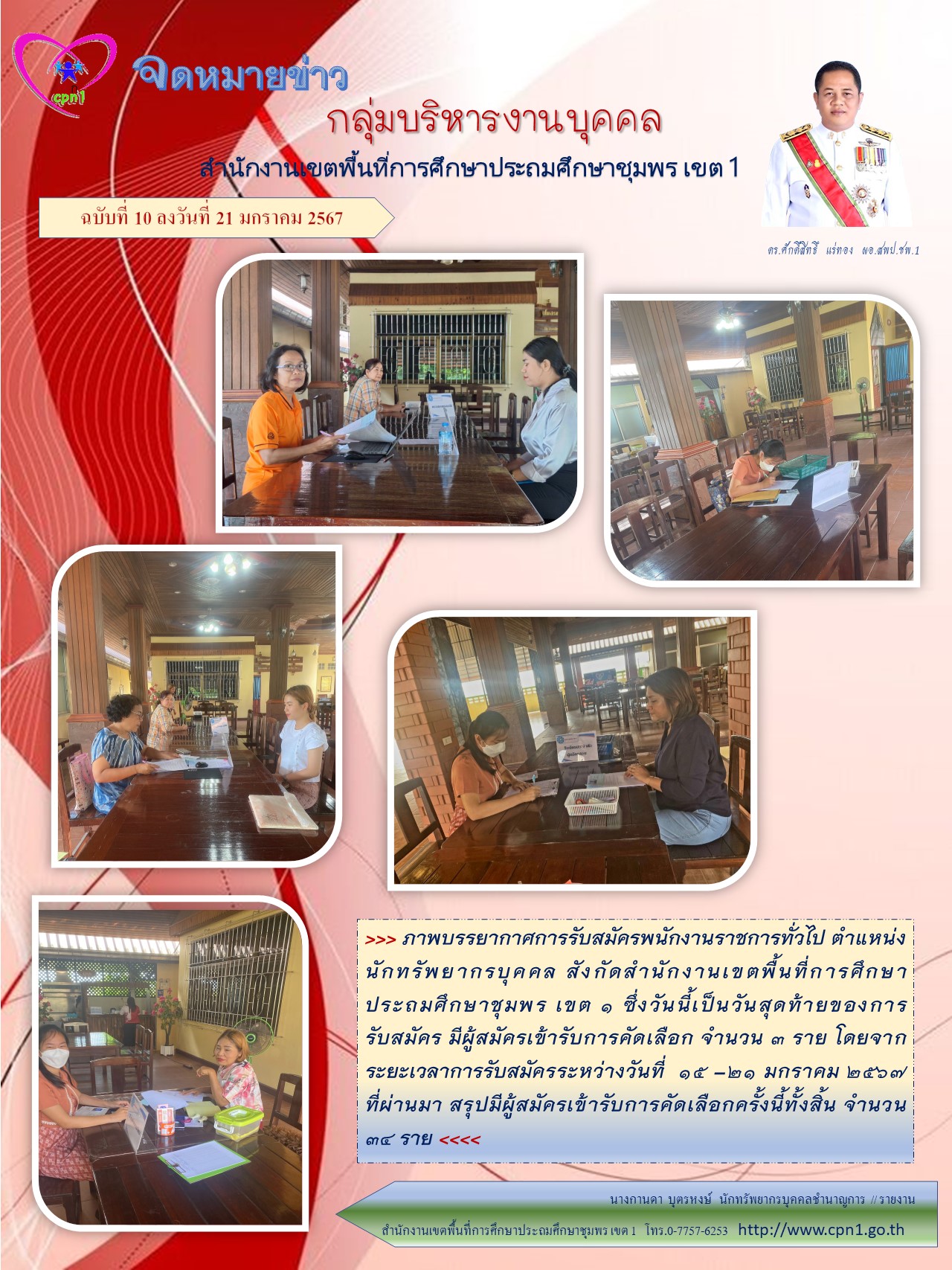 การรับสมัครพนักงานราชการทั่วไป ตำแหน่งนักทรัพยากรบุคคล สังกัดสำนักงานเขตพื้นที่การศึกษาประถมศึกษาชุมพร เขต 1 21 มกราคม 256721 มกราคม 2024 กลุ่มบริหารงานบุคคล สพป.ชพ.1 ข่าวและกิจกรรม สพป.ชพ.1, ข่าวและกิจกรรมกลุ่มบริหารงานบุคคล FacebookFacebookXXLINELine กลุ่มบริหารงานบุคคล สพป.ชพ.1