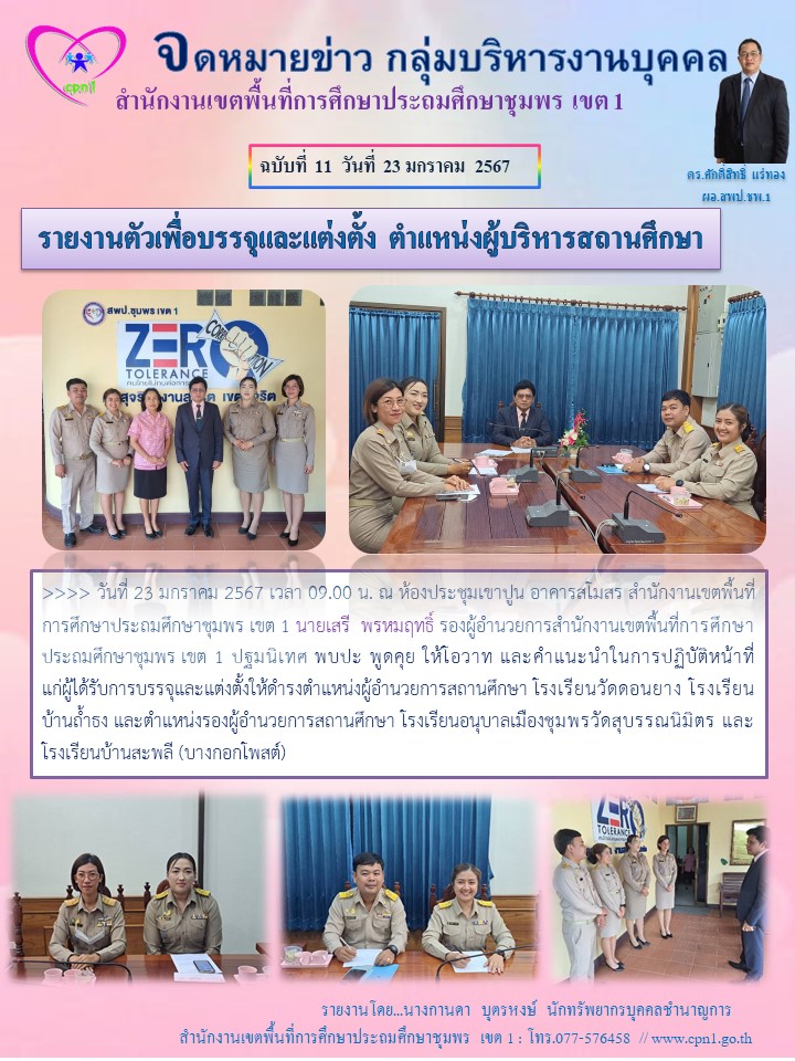 การบรรจุและแต่งตั้งให้ดำรงตำแหน่งรองผู้อำนวยการสถานศึกษาและผู้อำนวยการสถานศึกษา 23 มกราคม 256723 มกราคม 2024 กลุ่มบริหารงานบุคคล สพป.ชพ.1 ข่าวและกิจกรรม สพป.ชพ.1, ข่าวและกิจกรรมกลุ่มบริหารงานบุคคล FacebookFacebookXXLINELine กลุ่มบริหารงานบุคคล สพป.ชพ.1