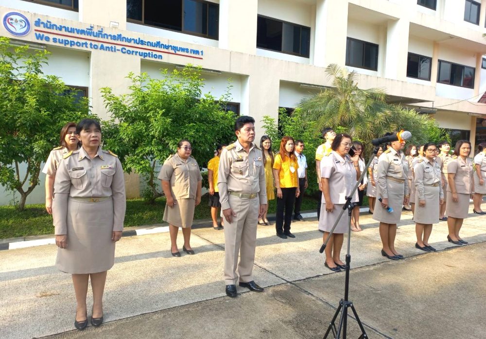 สพป.ชุมพร เขต 1 ร่วมกิจกรรมเข้าแถวเคารพธงชาติ บูชาพระรัตนตรัย