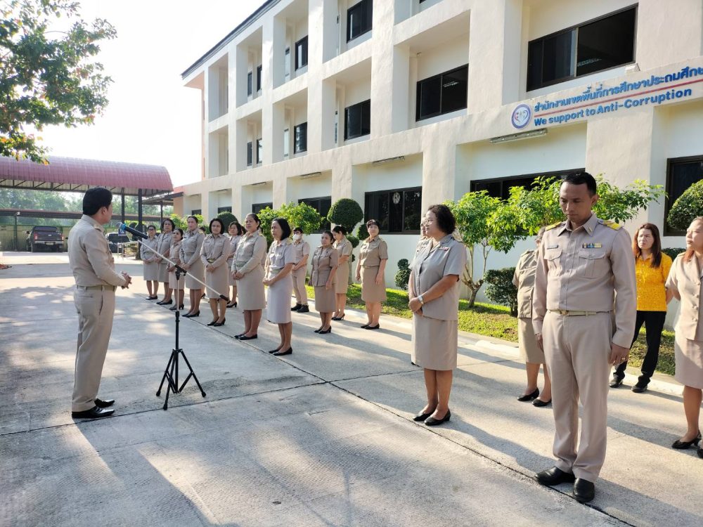 สพป.ชุมพร เขต 1 เข้าแถวเคารพธงชาติ บูชาพระรัตนตรัย และกล่าวคำปฏิญญาเขตสุจริต
