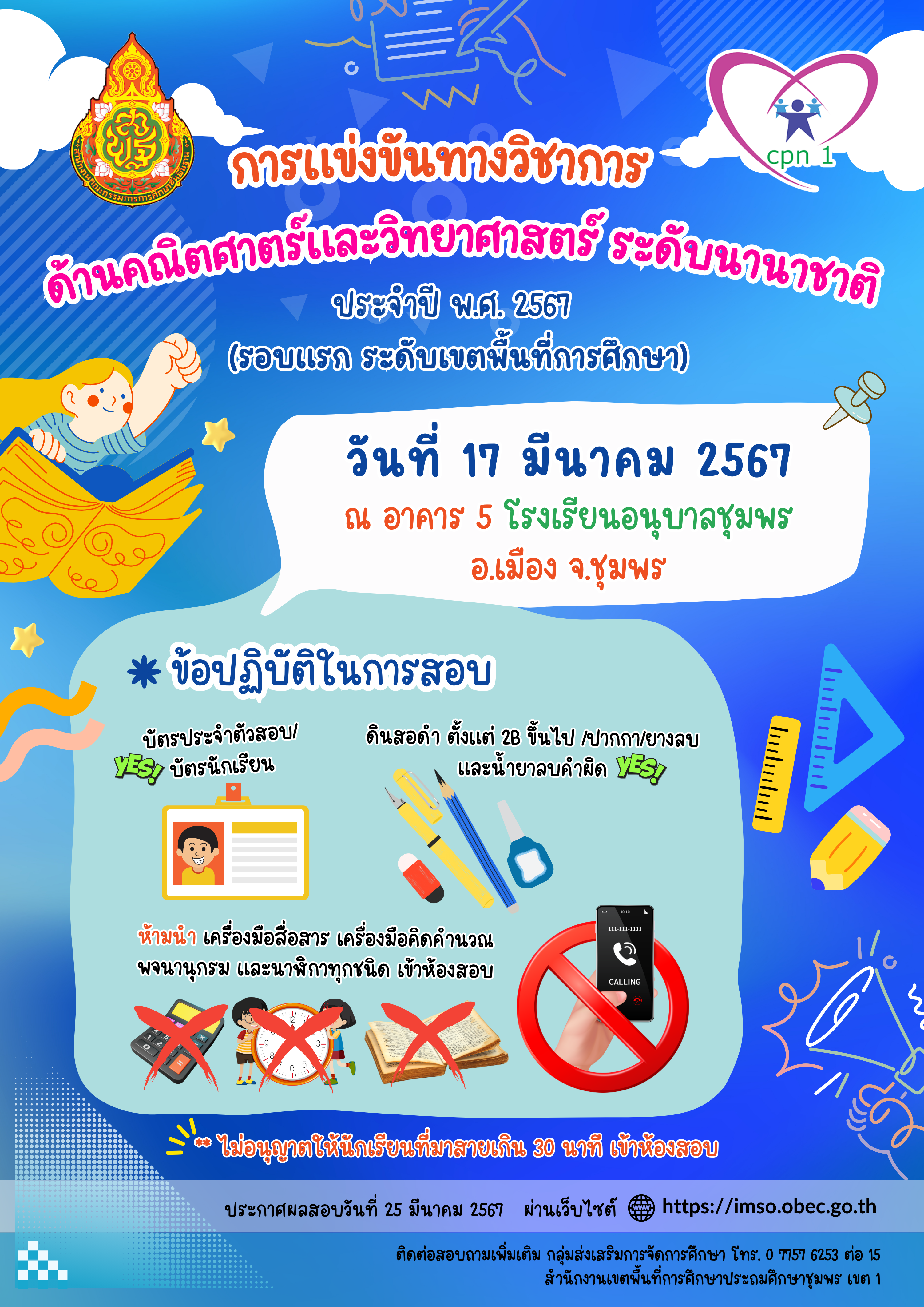 ประชาสัมพันธ์การแข่งขันทางวิชาการ ด้านคณิตศาสตร์และวิทยาศาสตร์ ระดับนานาชาติ ประจำปี พ.ศ. 2567 (รอบแรก ระดับเขตพื้นที่การศึกษา) 15 มีนาคม 256715 มีนาคม 2024 กลุ่มส่งเสริมการจัดการศึกษา สพป.ชพ.1 การเปิดโอกาสให้เกิดการมีส่วนร่วม, ข่าวและกิจกรรมกลุ่มส่งเสริมการจัดการศึกษา FacebookFacebookXXLINELine กลุ่มส่งเสริมการจัดการศึกษา สพป.ชพ.1