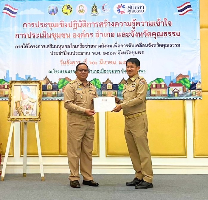สพป.ชุมพร เขต 1 ร่วมประชุมการขับเคลื่อนแผนปฏิบัติการ ด้านการส่งเสริมคุณธรรมแห่งชาติ ระยะที่ 2 ปีงบประมาณ พ.ศ.2567 และรับเกียรติบัตรการประเมินองค์กรคุณธรรมประจำปี 2566