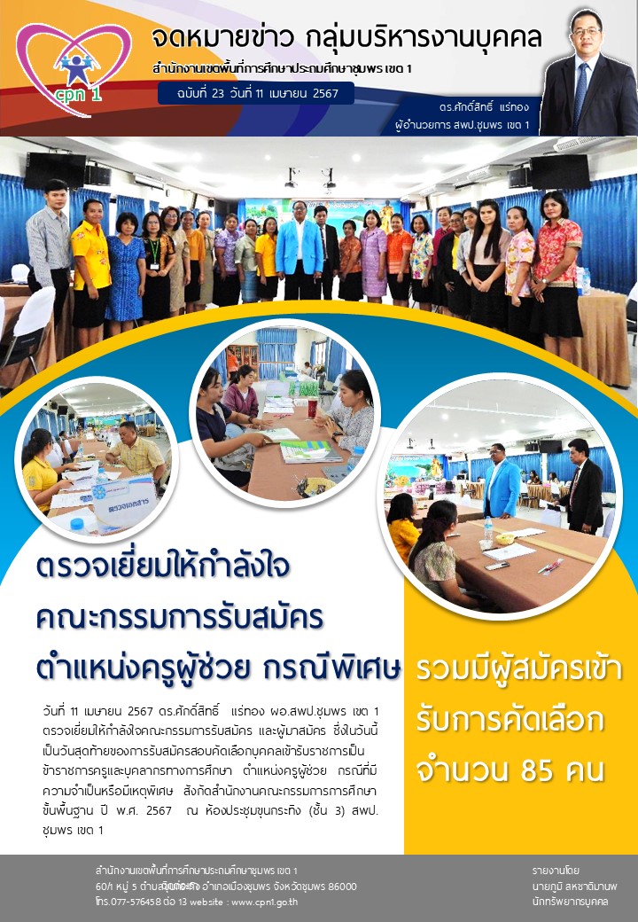 ผอ สพป.ชุมพร เขต 1 ตรวจเยี่ยมให้กำลังใจคณะกรรมการรับสมัคร ตำแหน่งครูผู้ช่วย กรณีพิเศษ 11 เมษายน 256711 เมษายน 2024 กลุ่มบริหารงานบุคคล สพป.ชพ.1 ข่าวและกิจกรรม สพป.ชพ.1, ข่าวและกิจกรรมกลุ่มบริหารงานบุคคล FacebookFacebookXXLINELine กลุ่มบริหารงานบุคคล สพป.ชพ.1