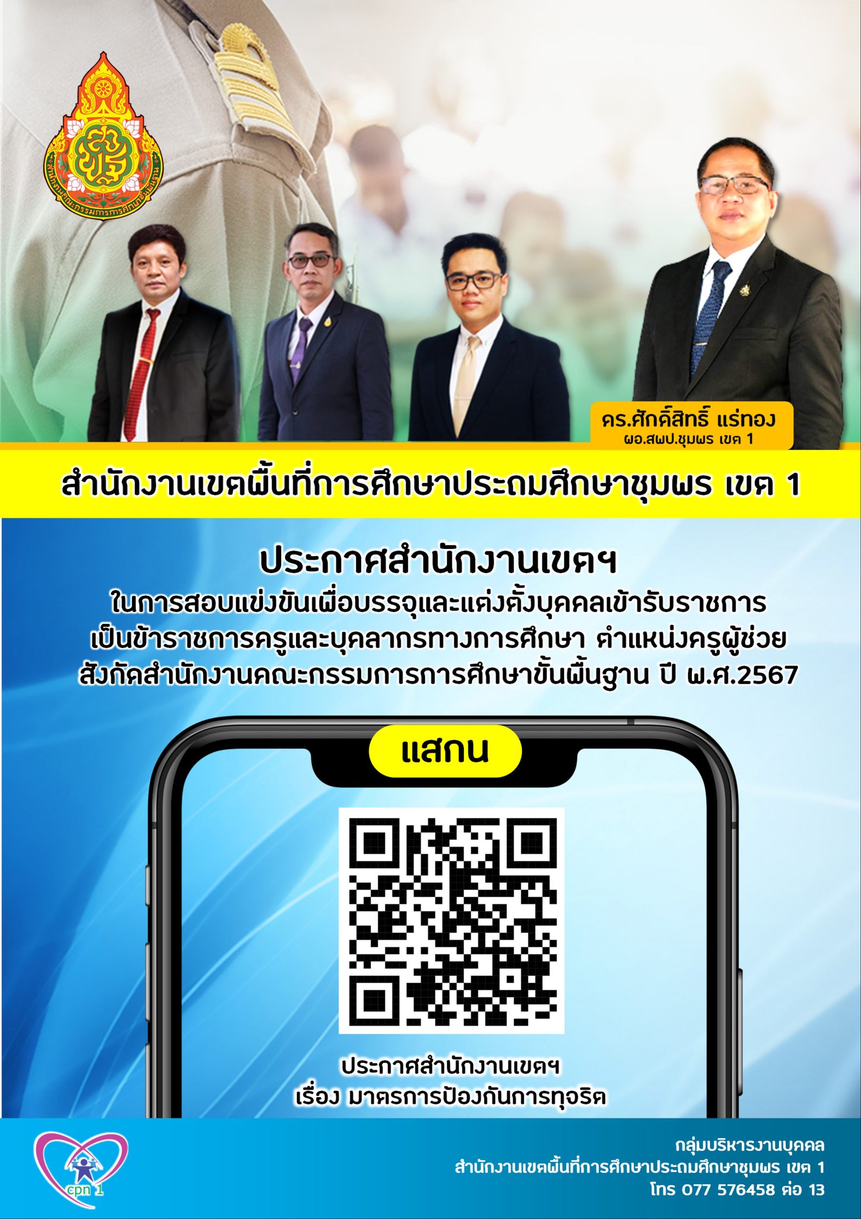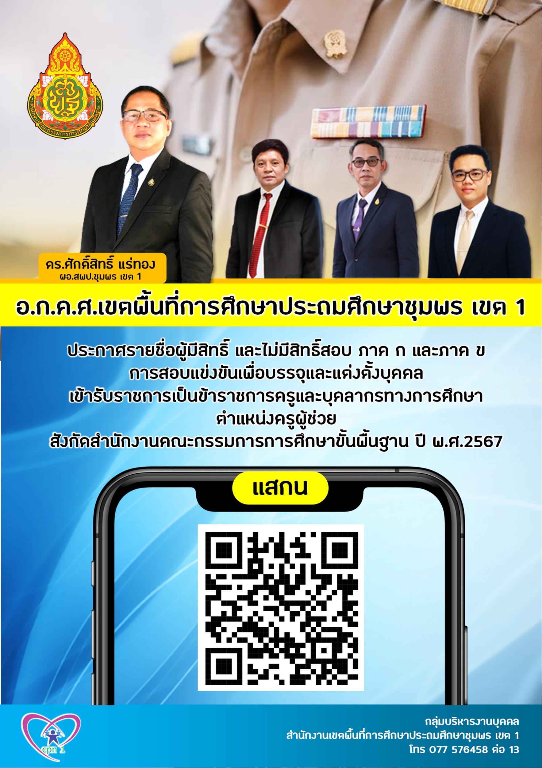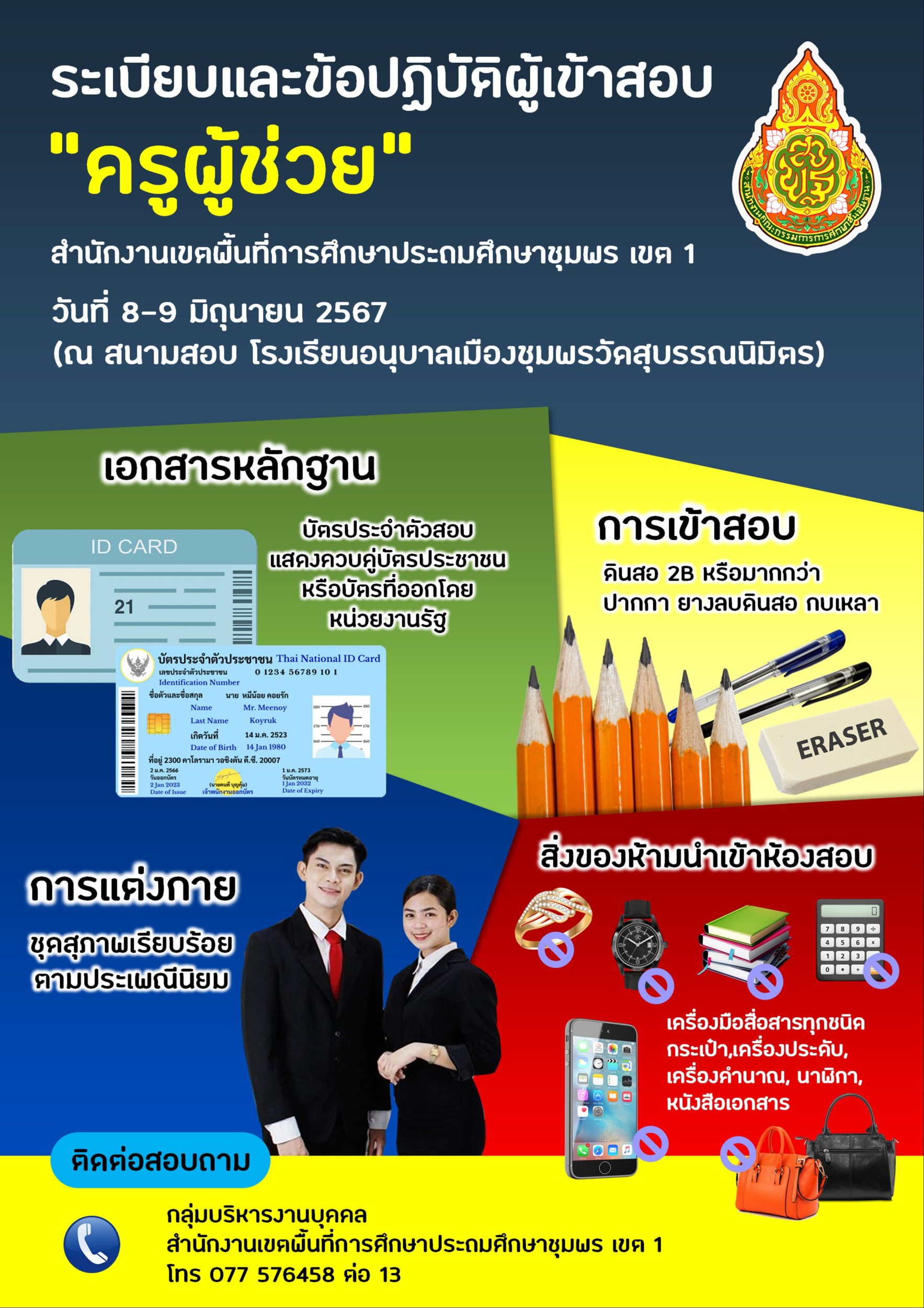 ประกาศรายชื่อผู้มีสิทธิ์ และไม่มีสิทธิ์สอบ ภาค ก และภาค ข การสอบแข่งขันเพื่อบรรจุและแต่งตั้งบุคคลเข้ารับราชการเป็นข้าราชการครูและบุคลากรทางการศึกษา ตำแหน่งครูผู้ช่วย สังกัดสำนักงานคณะกรรมการการศึกษาขั้นพื้นฐาน ปี พ.ศ.2567 24 พฤษภาคม 256724 พฤษภาคม 2024 กลุ่มบริหารงานบุคคล สพป.ชพ.1 ข่าวและกิจกรรม สพป.ชพ.1, ข่าวและกิจกรรมกลุ่มบริหารงานบุคคล FacebookFacebookXXLINELine กลุ่มบริหารงานบุคคล สพป.ชพ.1