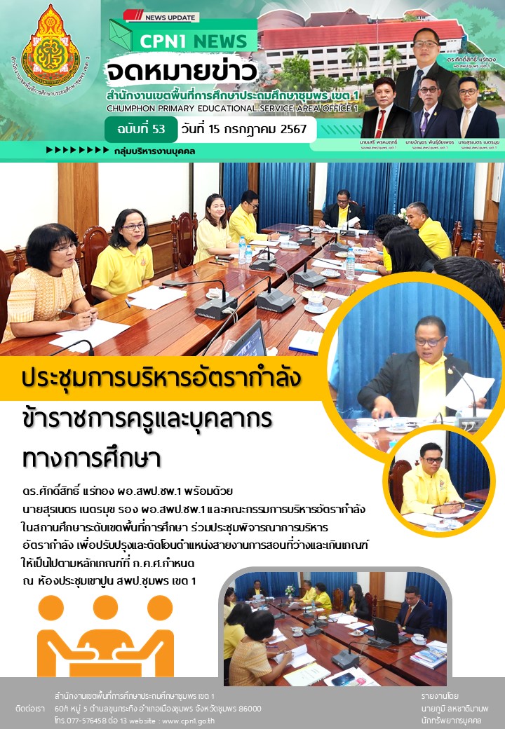 ประชุมการบริหารอัตรากำลังข้าราชการครูและบุคลากรทางการศึกษา 15 กรกฎาคม 256715 กรกฎาคม 2024 กลุ่มบริหารงานบุคคล สพป.ชพ.1 ข่าวและกิจกรรม สพป.ชพ.1, ข่าวและกิจกรรมกลุ่มบริหารงานบุคคล FacebookFacebookXXLINELine กลุ่มบริหารงานบุคคล สพป.ชพ.1
