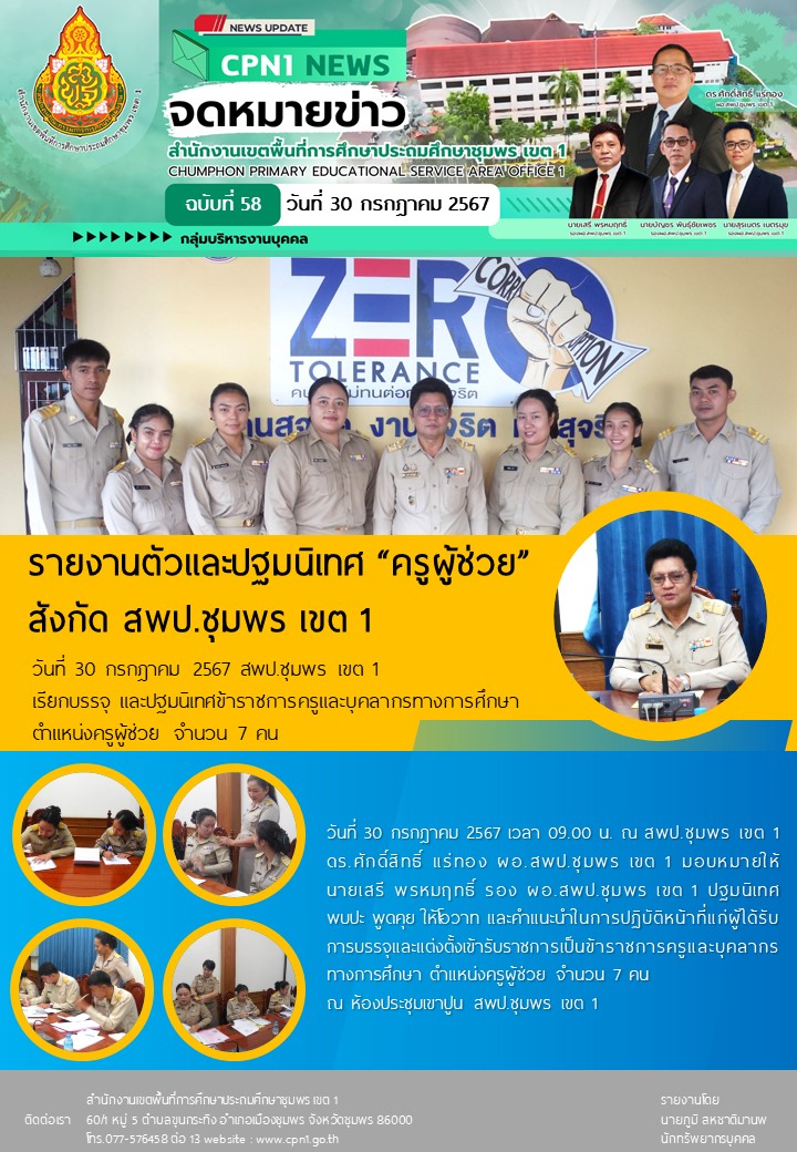 รายงานตัวและปฐมนิเทศ “ครูผู้ช่วย” สังกัด สพป.ชุมพร เขต 1 จำนวน 7 คน 30 กรกฎาคม 256730 กรกฎาคม 2024 กลุ่มบริหารงานบุคคล สพป.ชพ.1 ข่าวและกิจกรรมกลุ่มบริหารงานบุคคล FacebookFacebookXXLINELine กลุ่มบริหารงานบุคคล สพป.ชพ.1