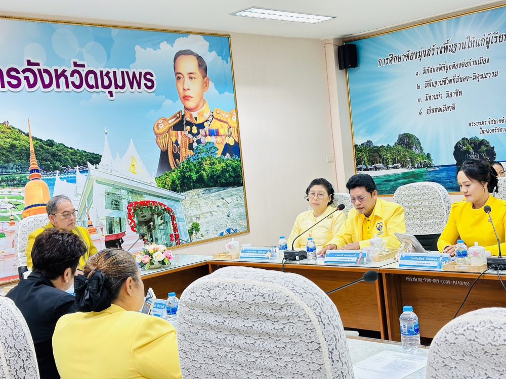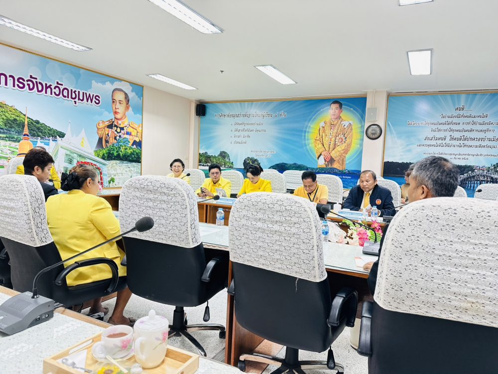 วันจันทร์ ที่ 19 สิงหาคม 2567 เวลา 08.30 น. ดร. ศักดิ์สิทธิ์ แร่ทอง ผู้อำนวยการสำนักงาน เขตพื้นที่การศึกษาประถมศึกษาชุมพร เขต 1 มอบหมายให้ นายเสรี พรหมฤทธิ์ รองผู้อำนวยการสำนักงานเขตพื้นที่การศึกษาประถมศึกษาชุมพร เขต 1 พร้อมด้วย นางสาวฒาลิสา ศรีนฤพัฒน์ นักวิเคราะห์นโยบายและแผน และ นางสาวหทัยรัตน์ แดงรักษา เจ้าพนักงานธุรการ เข้าร่วมประชุมรายงานผลการดำเนินงานตามนโยบายการศึกษา กระทรวงศึกษาธิการ (เรียนดี มีความสุข) รอบที่ 2 ประจำปีงบประมาณ พ.ศ. 2567 ณ ห้องเสมารักษ์ สำนักงานศึกษาธิการจังหวัดชุมพร