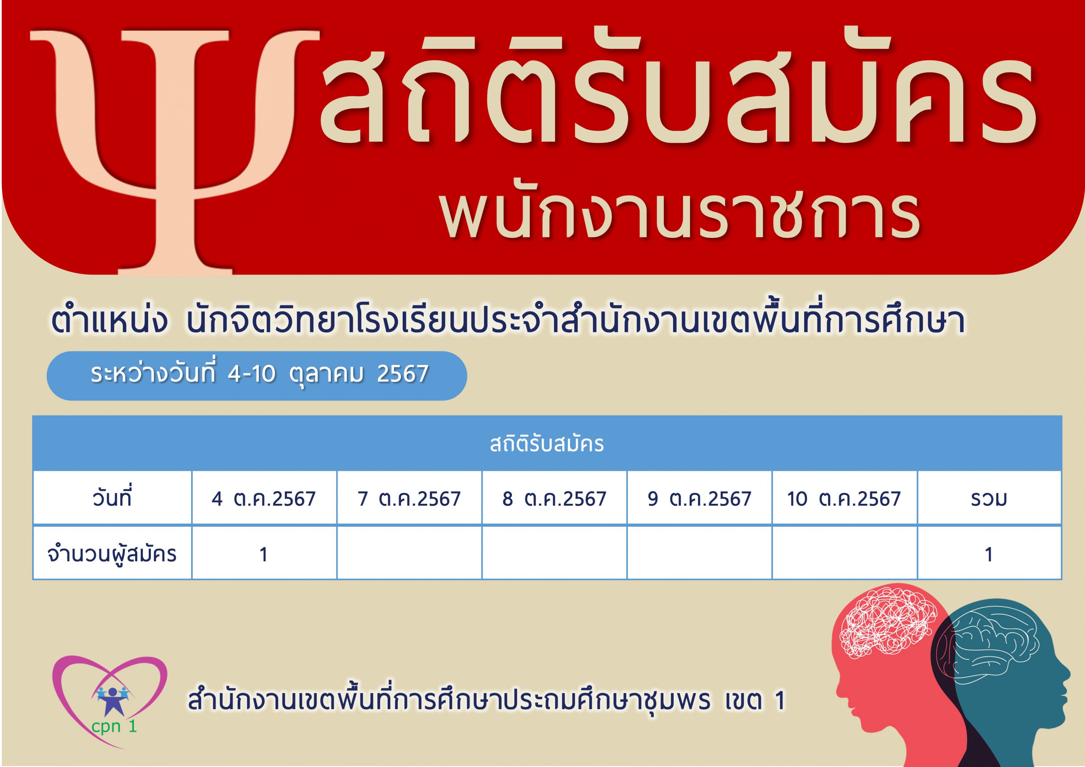 สถิติผู้สมัครพนักงานราชการทั่วไป ตำแหน่งนักจิตวิทยาโรงเรียนประจำสำนักงานเขตพื้นที่การศึกษา วันที่ 4 ตุลาคม 2567 04 ตุลาคม 256704 ตุลาคม 2024 กลุ่มบริหารงานบุคคล สพป.ชพ.1 การสรรหาและคัคเลือกบุคลากร, ข่าวและกิจกรรม สพป.ชพ.1, ข่าวและกิจกรรมกลุ่มบริหารงานบุคคล FacebookFacebookXXLINELine กลุ่มบริหารงานบุคคล สพป.ชพ.1