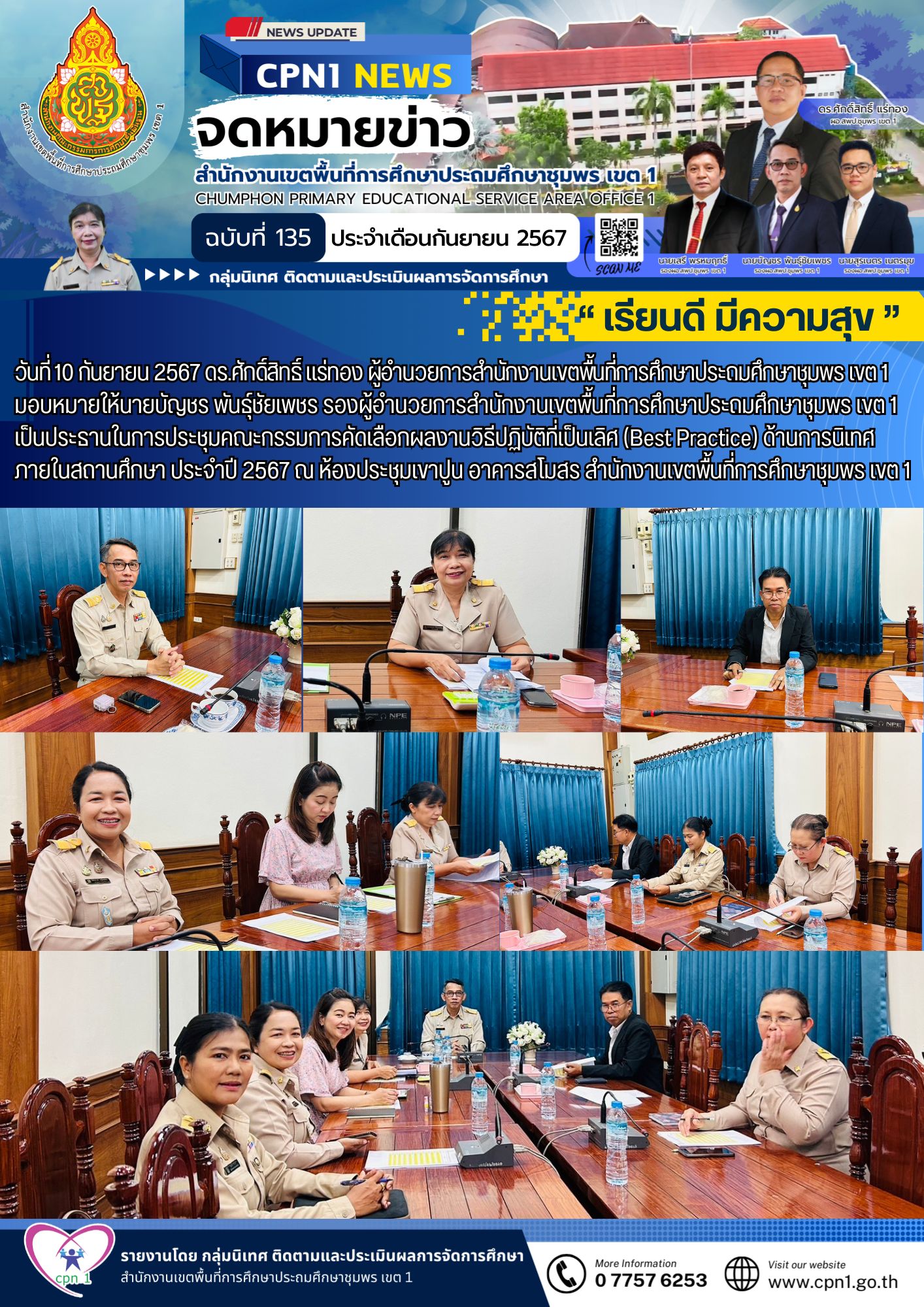 วันที่ 10 กันยายน 2567 ดร.ศักดิ์สิทธิ์ แร่ทอง ผู้อำนวยการสำนักงานเขตพื้นที่การศึกษาประถมศึกษาชุมพร เขต 1