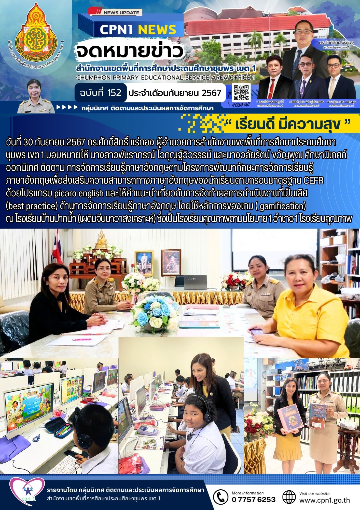 วันที่ 30 กันยายน 2567 ดร.ศักดิ์สิทธิ์ แร่ทอง ผู้อำนวยการสำนักงานเขตพื้นที่การศึกษาประถมศึกษาชุมพร เขต 1