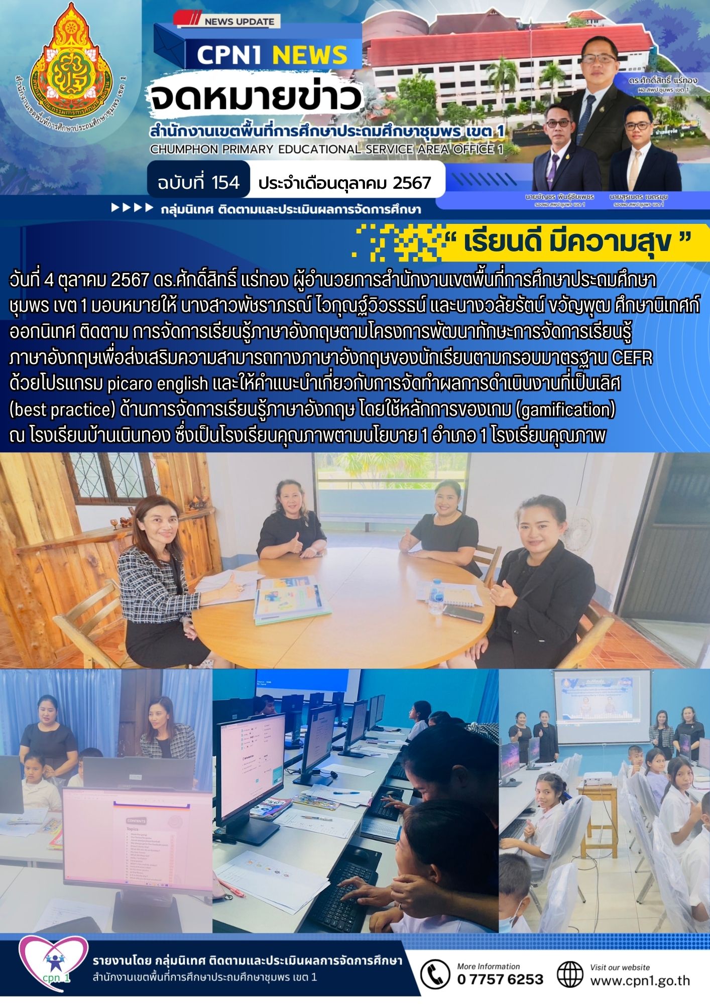 ด้านการจัดการเรียนรู้ภาษาอังกฤษ โดยใช้หลักการของเกม (gamification) ณ โรงเรียนบ้านเนินทอง ซึ่งเป็นโรงเรียนคุณภาพ