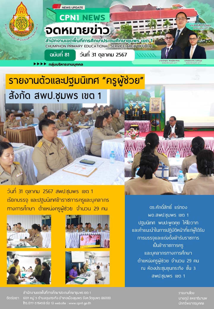 รายงานตัวและปฐมนิเทศ “ครูผู้ช่วย” สังกัด สำนักงานเขตพื้นที่การศึกษาประถมศึกษาชุมพร เขต 1 31 ตุลาคม 256731 ตุลาคม 2024 กลุ่มบริหารงานบุคคล สพป.ชพ.1 การบรรจุและแต่งตั้งบุคลากร, ข่าวและกิจกรรมกลุ่มบริหารงานบุคคล https://photos.app.goo.gl/wJe9FUpkDJkG97Dr5 FacebookFacebookXXLINELine กลุ่มบริหารงานบุคคล สพป.ชพ.1