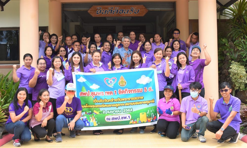 วันที่ 2 เมษายน 2564 นายมนูญ จันทร์สุข ผอ.สพป.ชุมพร เขต 1 นำข้าราชการและลูกจ้างในสำนักงานเขตฯ ร่วมจัดกิจกรรม 5 ส. เฉลิมพระเกียรติเพื่อน้อมถวาย เป็นพระราชกุศล เนื่องในโอกาส วันคล้ายวันพระราชสมภพสมเด็จพระกนิษฐาธิราชเจ้า กรมสมเด็จพระเทพรัตนราชสุดาฯ สยามบรมราชกุมารี 2 เมษายน 2564 ณ สำนักงานเขตพื้นที่การศึกษาประถมศึกษาชุมพร เขต 1