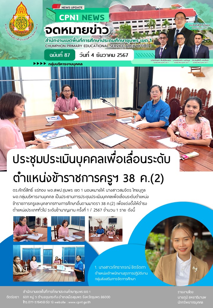 การประชุมประเมินบุคคลเพื่อเลื่อนระดับตำแหน่งข้าราชการครูและบุคลากรทางการศึกษาอื่นตามมาตรา 38 ค.(2) เพื่อแต่งตั้งให้ดำรงตำแหน่งประเภททั่วไป ระดับชำนาญงาน 04 ธันวาคม 256704 ธันวาคม 2024 กลุ่มบริหารงานบุคคล สพป.ชพ.1 ข่าวและกิจกรรมกลุ่มบริหารงานบุคคล FacebookFacebookXXLINELine กลุ่มบริหารงานบุคคล สพป.ชพ.1