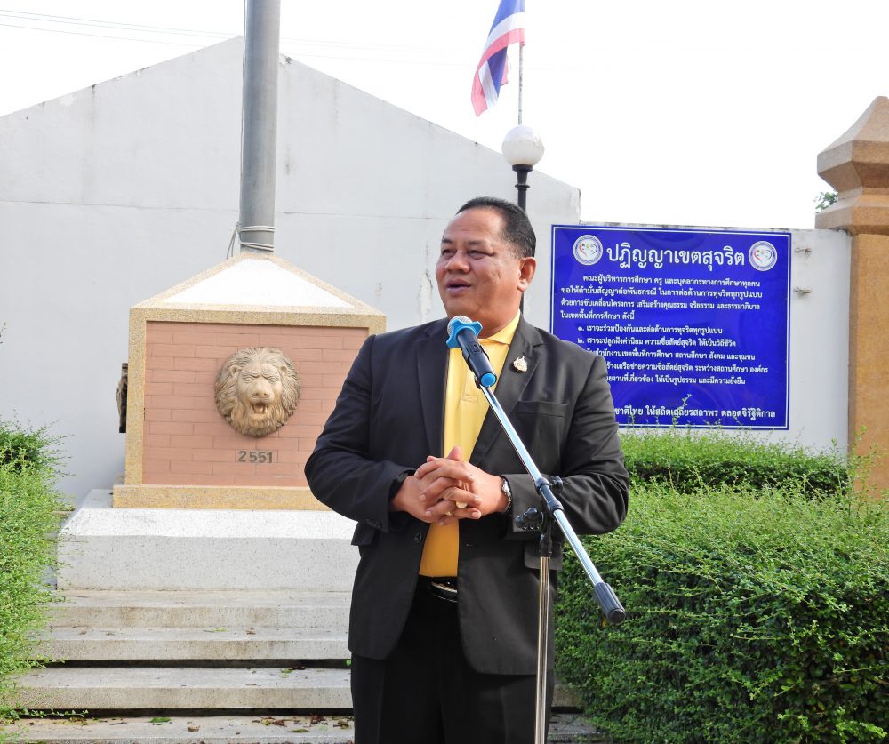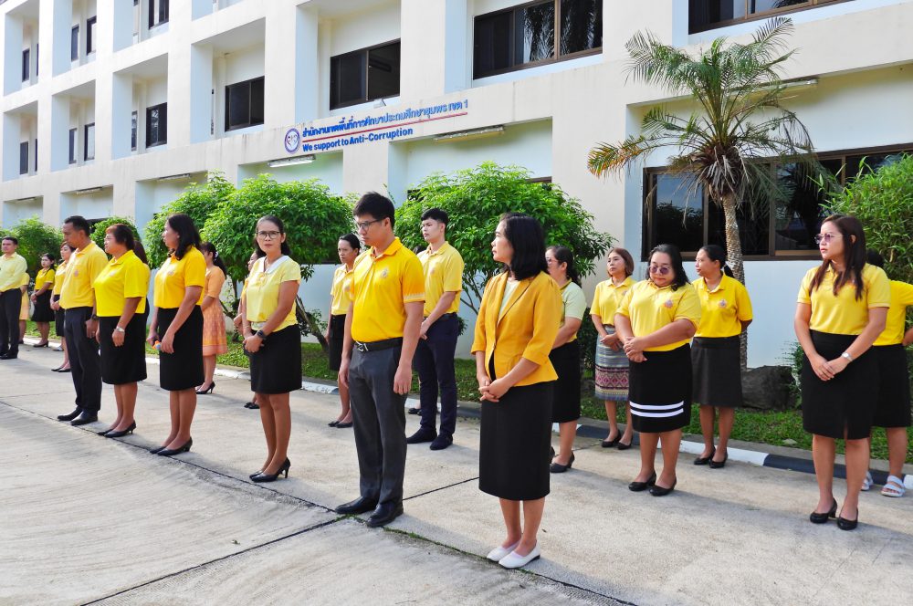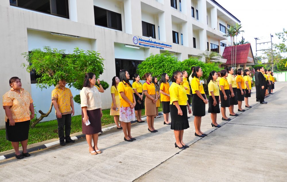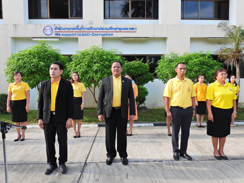 สพป.ชุมพร เขต 1 ร่วมกิจกรรมเข้าแถวเคารพธงชาติ บูชาพระรัตนตรัย และกล่าวคำปฏิญญาเขตสุจริต