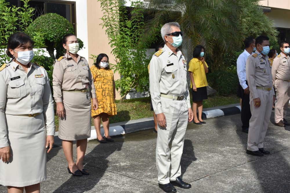 วันจันทร์ที่ 3 พฤษภาคม 2564 เวลา 08.30 น. นายมนูญ จันทร์สุข ผู้อำนวยการสำนักงานเขตพื้นที่การศึกษาประถมศึกษาชุมพร เขต 1 พร้อมด้วย รอง ผอ.สพป.ชุมพร เขต 1 ผู้อำนวยการกลุ่ม/หน่วย เจ้าหน้าที่และลูกจ้าง ร่วมกิจกรรมเข้าแถวเคารพธงชาติ สวดมนต์ กล่าวคำปฏิญญาเขตสุจริตเพื่อเป็นการแสดงออกเชิงสัญลักษณ์ในการขับเคลื่อนโครงการเสริมสร้างคุณธรรมจริยธรรม และธรรมาภิบาลในเขตพื้นที่การศึกษาสุจริต ในการนี้ ท่านผู้อำนวยการสำนักงานเขตพื้นที่การศึกษาประถมศึกษาชุมพร เขต 1 ได้พบปะพูดคุย ขอบคุณบุคลากรทุกคนที่ร่วมกันปฏิบัติหน้าที่และกิจกรรมต่างๆของสำนักงานในสัปดาห์ที่ผ่านมา ทั้งผู้ที่มาปฏิบัติงาน ณ สำนักงาน และผู้ที่ work from home ซึ่งการดำเนินงานไปด้วยความเรียบร้อย ทั้งนี้ ท่านผู้อำนวยการสำนักงานเขตพื้นที่การศึกษาประถมศึกษาชุมพร เขต 1 ได้เน้นย้ำในเรื่องการให้บริการกับผู้มาติดต่อราชการ โดยให้ปฏิบัติตามมาตรการป้องกันและควบคุมสถานการณ์การแพร่ระบาดของโรคติดเชื้อไวรัส 2019 (Covid – 19) และการปฏิบัติงานให้ทุกคนคำนึงถึงเป้าหมายการดำเนินงานของงานที่ได้รับมอบหมายเป็นสำคัญ