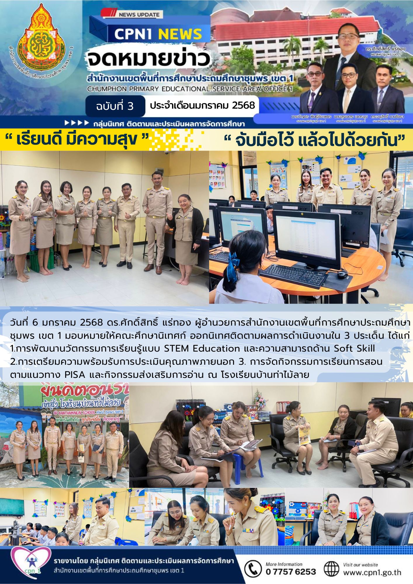 วันที่ 6 มกราคม 2568 ดร.ศักดิ์สิทธิ์ แร่ทอง ผู้อำนวยการสำนักงานเขตพื้นที่การศึกษาประถมศึกษาชุมพร เขต 1