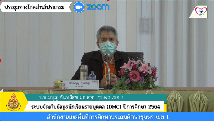 วันที่ 8 มิถุนายน 2564 เวลา 13.30 น. นายมนูญ จันทร์สุข ผอ.สพป.ชพ.1 เป็นประธานการประชุมระบบจัดเก็บข้อมูลนักเรียนรายบุคคล (DMC) ปีการศึกษา 2564 ผ่านระบบการประชุมทางไกล โปรแกรม Zoom เพื่อแจ้งแนวทางการบริหารจัดการข้อมูลสารสนเทศทางการศึกษา ปีการศึกษา 2564 ให้เป็นไปด้วยความเรียบร้อย ถูกต้อง ตรงเวลา สามารถนำมาใช้เพื่อการบริหารจัดการศึกษา การบริหารงบประมาณ ได้อย่างมีประสิทธิภาพ ซึ่งเป็นไปตามมาตรการขับเคลื่อนการส่งเสริมคุณธรรมและความโปร่งใสในหน่วยงาน มาตรการที่ 1 มาตรการปรับปรุงระบบการทำงาน การนำเทคโนโลยีมาใช้ในการดำเนินงานเพื่อให้บริการแต่ความสะดวกรวดเร็วมากขึ้น กิจกรรมการประชุมผ่านระบบทางไกล (Video Conference) โดยมี นายภิญโญ พูลสวัสดิ์ รอง ผอ.สพป.ชพ.1 และนางนันท์นภัส เกียรติมาพรศักดิ์ ปฏิบัติหน้าที่ ผอ.กลุ่มส่งเสริมการศึกษาทางไกลฯ ร่วมประชุมในครั้งนี้ ณ ห้องประชุมขุนกระทิง สพป.ชพ.1