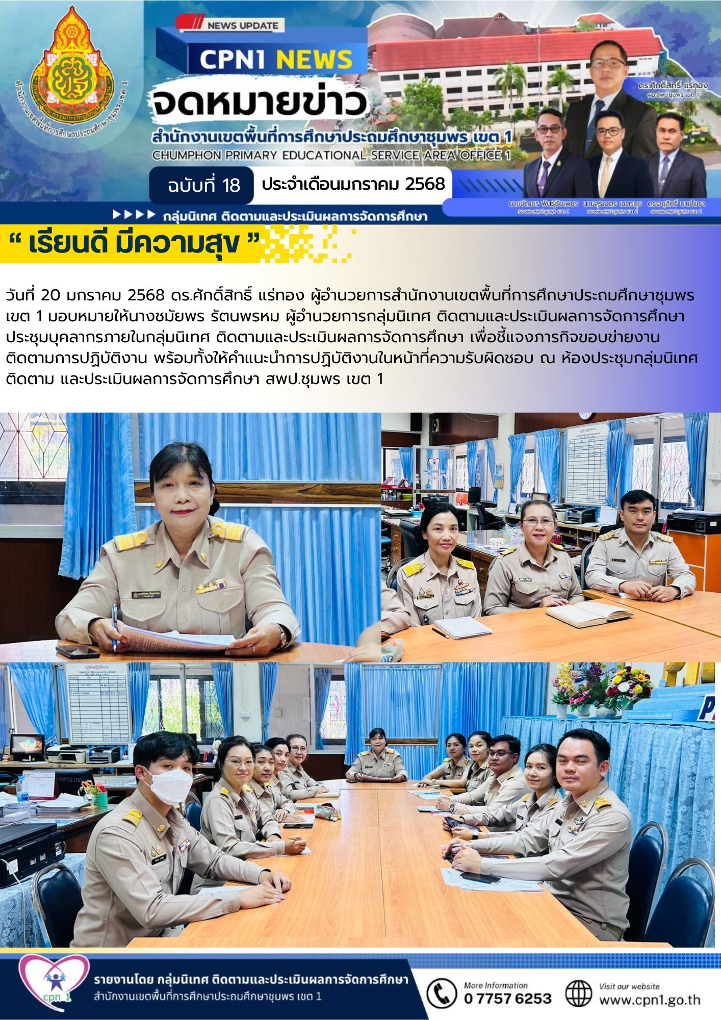 วันที่ 20 มกราคม 2568 ดร.ศักดิ์สิทธิ์ แร่ทอง ผู้อำนวยการสำนักงานเขตพื้นที่การศึกษาประถมศึกษาชุมพร เขต 1 มอบหมายให้
