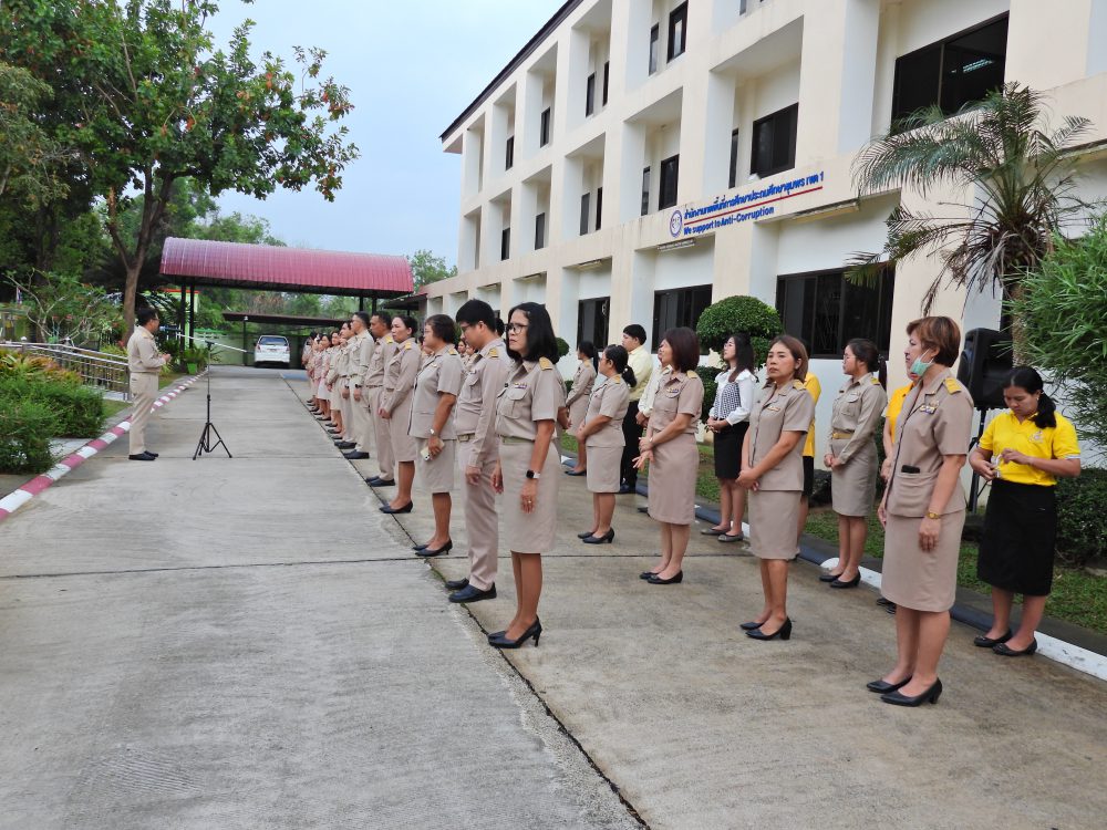 >> ดร.ศักดิ์สิทธิ์ แร่ทอง ผู้อำนวยการสำนักงานเขตพื้นที่การศึกษาประถมศึกษาชุมพร เขต 1 มอบหมายให้ นายสุรเนตร เนตรมุข รองผู้อำนวยการสำนักงานเขตพื้นที่การศึกษาประถมศึกษาชุมพร เขต 1 พร้อมด้วย นายบัญชร พันธุ์ชัยเพชร ดร.อนุสิทธิ์ นามโยธา รองผู้อำนวยการสำนักงานเขตพื้นที่การศึกษาประถมศึกษาชุมพร เขต 1 พร้อมด้วย ผู้อำนวยการ กลุ่ม/หน่วย และบุคลากรใน สพป.ชุมพร เขต 1 ร่วมกิจกรรมเข้าแถว เคารพธงชาติ บูชาพระรัตนตรัย และกล่าวคำปฏิญญาเขตสุจริต เพื่อให้ทุกคนได้ตระหนักและ เห็นคุณค่าของชาติ สร้างความรัก สามัคคีให้เกิดในหน่วยงานสร้างวินัย รู้หน้าที่ ความรับผิดชอบ ปฏิบัติดี ปฏิบัติชอบ ภายใต้คุณธรรมนำความรู้ เพื่อสร้างและรักษาเอกลักษณ์ขององค์กร แสดงออกเชิงสัญลักษณ์ในการขับเคลื่อนโครงการเสริมสร้างคุณธรรม จริยธรรม และธรรมาภิบาล ในเขตพื้นที่การศึกษา "ป้องกันการทุจริต" (เขตสุจริต) ต่อจากนั้น นายสุรเนตร เนตรมุข รองผู้อำนวยการสำนักงานเขตพื้นที่การศึกษาประถมศึกษาชุมพร เขต 1 ได้พบปะพูดคุย เน้นย้ำ ในเรื่องของการปฏิบัติหน้าที่ของตนเองให้ทุกคนปฏิบัติงานโดยคำนึงถึงประสิทธิภาพ และประโยชน์ ของราชการเป็นหลักเพื่อไม่ให้เกิดเสียหายและเพื่อให้งานเกิดความคล่องตัว และได้ชี้แจง แจ้งภารกิจงานต่าง ๆ ของสัปดาห์นี้เพื่อให้ทุกคนได้เตรียมความพร้อมในการปฏิบัติต่อไป ณ บริเวณหน้าอาคารสำนักงานเขตพื้นที่การศึกษาประถมศึกษาชุมพร เขต 1.>>
