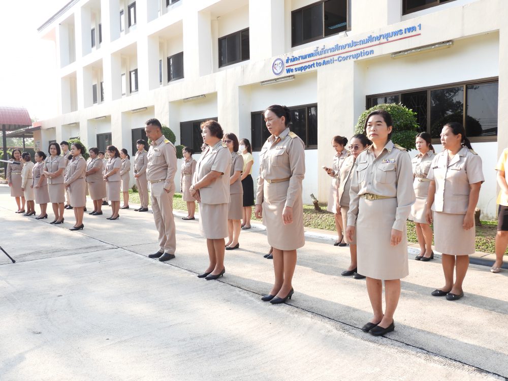สพป.ชุมพร เขต 1 เข้าแถวเคารพธงชาติ บูชาพระรัตนตรัย