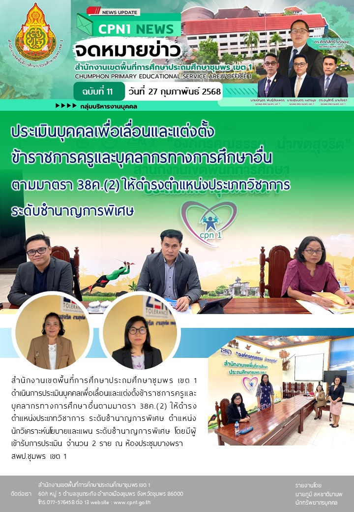 การประเมินบุคคลเพื่อเลื่อนและแต่งตั้งข้าราชการครูและบุคลากรทางการศึกษาอื่นตามมาตรา 38ค.(2) ให้ดำรงตำแหน่งประเภทวิชาการ ระดับชำนาญการพิเศษ ตำแหน่ง นักวิเคราะห์นโยบายและแผน ระดับชำนาญการพิเศษ 27 กุมภาพันธ์ 256827 กุมภาพันธ์ 2025 กลุ่มบริหารงานบุคคล สพป.ชพ.1 การสรรหาและคัคเลือกบุคลากร, ข่าวและกิจกรรม สพป.ชพ.1, ข่าวและกิจกรรมกลุ่มบริหารงานบุคคล FacebookFacebookXXLINELine กลุ่มบริหารงานบุคคล สพป.ชพ.1