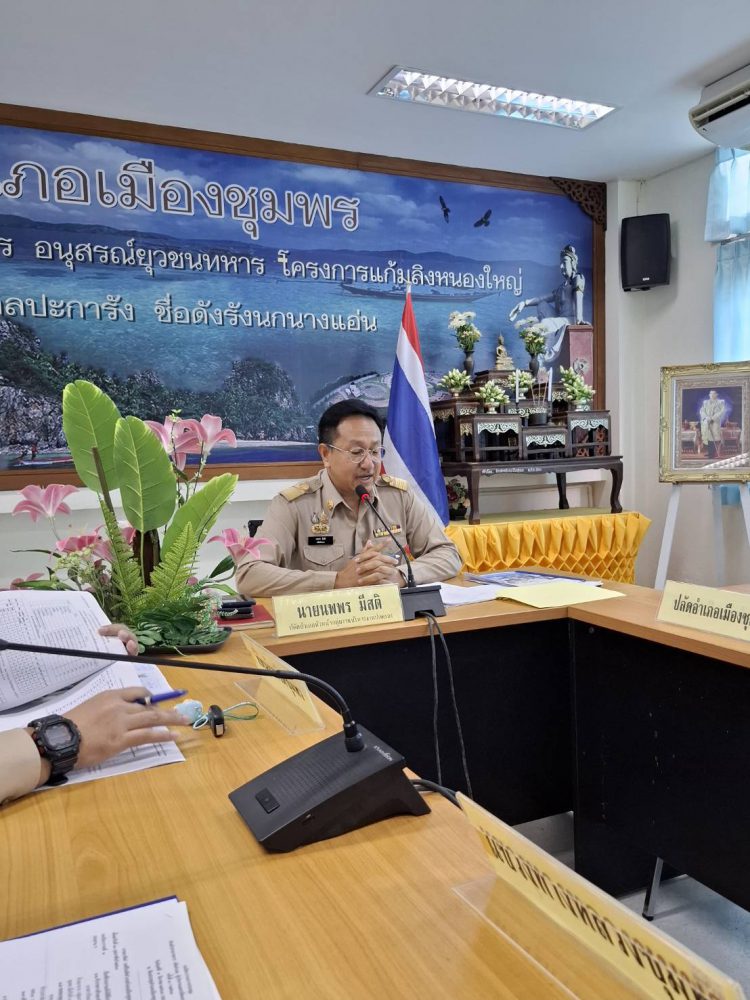 การประชุมครั้งนี้จัดขึ้นโดยอำเภอเมืองชุมพร เพื่อหารือเกี่ยวกับแนวทางการดำเนินงานของหน่วยงานราชการภายในอำเภอ รวมถึงการติดตามความคืบหน้าของโครงการต่าง ๆ ที่เกี่ยวข้องกับการพัฒนาพื้นที่และการให้บริการประชาชน โดยมี นายนพพร มีสติ ปลัดอำเภอหัวหน้าส่วนกลุ่มงานบริหารการปกครอง เป็นประธานในการประชุม