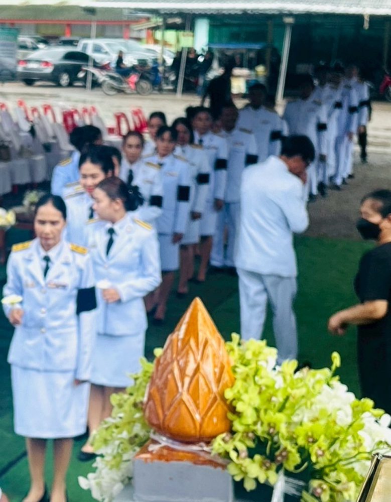 พิธีดังกล่าวจัดขึ้นอย่างสมเกียรติ โดยมีผู้บริหารสถานศึกษา ข้าราชการครู และบุคลากรทางการศึกษา รวมถึงญาติมิตรของผู้เสียชีวิต เข้าร่วมพิธีเป็นจำนวนมาก บรรยากาศเป็นไปด้วยความโศกเศร้าอาลัยต่อการจากไปของ นายบุญนึก รอดเผือก ซึ่งเป็นที่รักและเคารพของคนในชุมชน