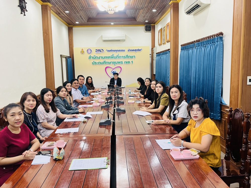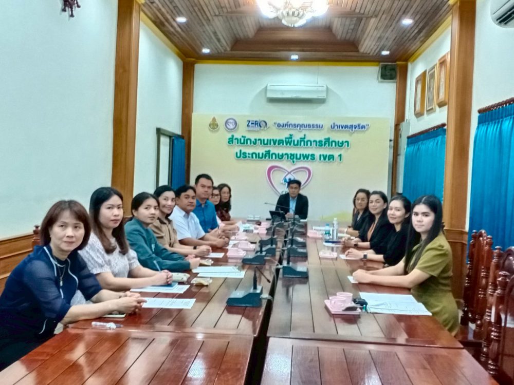 ดร.ศักดิ์สิทธิ์ แร่ทอง ผอ. สพป.ชุมพร เขต 1 มอบหมายให้ ดร.อนุสิทธิ์ นามโยธา รอง ผอ. สพป.ชุมพร เขต 1 ร่วมรับฟังข้อราชการ และแนวปฏิบัติการดำเนินการความเคลื่อนไหวต่างๆ จาก สพฐ. พร้อมด้วย พร้อมด้วย กลุ่มกลุ่มนิเทศและการจัดการศึกษา กลุมบริหารงานการเงินและสินทรัพย์ หน่วยตรวจสอบภายในและผู้ที่เกี่ยวข้องร่วมรับชมรายการ พฤหัสเช้า ข่าว สพฐ. ครั้งที่ 15/2568 จากนั้นที่ประชุมได้ชี้แจงปรึกษาหารือข้อราชการ ภารกิจงานของแต่ละกลุ่ม เพื่อให้การดำเนินงานขับเคลื่อน เป็นไปอย่างต่อเนื่อง บรรลุตามเป้าหมาย ณ ห้องประชุมเขาปูน อาคารสโมสร สำนักงานเขตพื้นที่การศึกษาประถมศึกษาชุมพร เขต 1 .