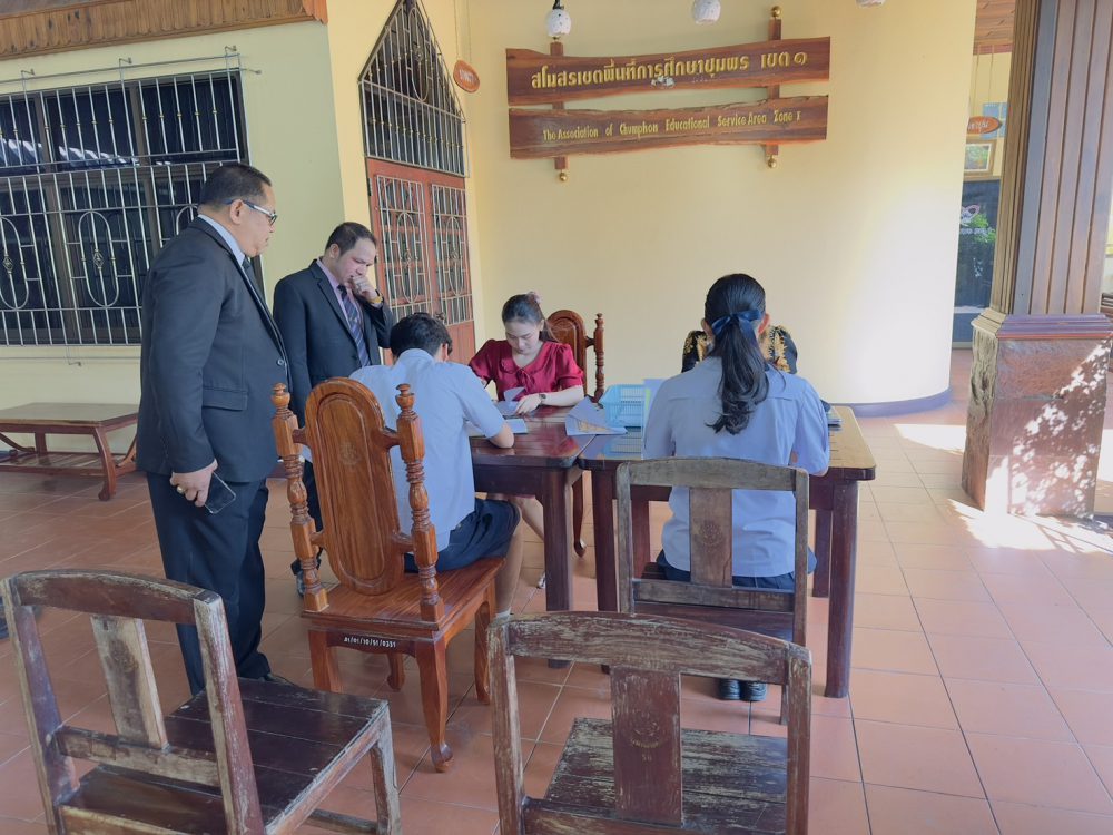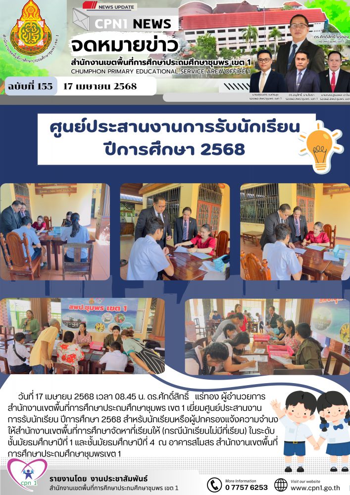 วันที่ 17 เมษายน 2568 เวลา 08.45 น. ดร.ศักดิ์สิทธิ์ แร่ทอง ผู้อำนวยการสำนักงานเขตพื้นที่การศึกษาประถมศึกษาชุมพร เขต 1 เยี่ยมศูนย์ประสานงาน การรับนักเรียน ปีการศึกษา 2568 สำหรับนักเรียนหรือผู้ปกครองแจ้งความจำนงให้สำนักงานเขตพื้นที่การศึกษาจัดหาที่เรียนให้ (กรณีนักเรียนไม่มีที่เรียน) ณ อาคารสโมสร สำนักงานเขตพื้นที่การศึกษาประถมศึกษาชุมพรเขต 1