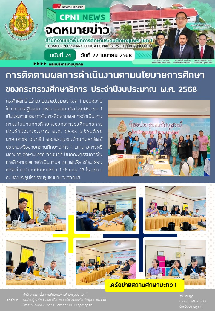การติดตามผลการดำเนินงานตามนโยบายการศึกษาของกระทรวงศึกษาธิการ ประจำปีงบประมาณ พ.ศ. 2568 เครือข่ายสถานศึกษาปะทิว 1 22 เมษายน 256822 เมษายน 2025 กลุ่มบริหารงานบุคคล สพป.ชพ.1 ข่าวและกิจกรรมกลุ่มบริหารงานบุคคล FacebookFacebookXXLINELine กลุ่มบริหารงานบุคคล สพป.ชพ.1