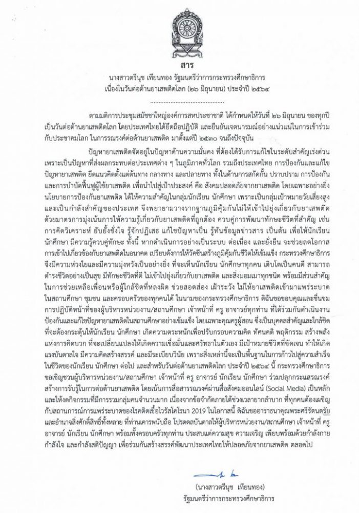 รณรงค์ประชาสัมพันธ์เนื่องในวันต่อต้านยาเสพติดโลก (26 มิถุนายน) ประจำปี 2564 25 มิถุนายน 2564 กลุ่มส่งเสริมการจัดการศึกษา สพป.ชพ.1 งานป้องกันและแก้ไขยาเสพติดในสถานศึกษา, ไม่มีหมวดหมู่ FacebookFacebookXXLINELine กลุ่มส่งเสริมการจัดการศึกษา สพป.ชพ.1