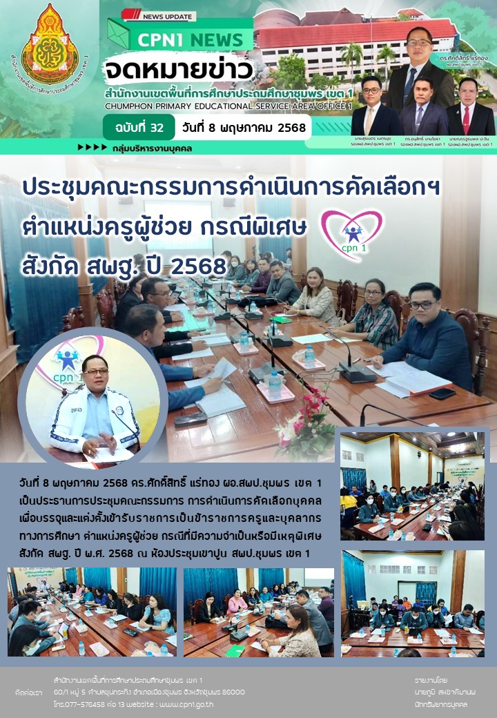 ประชุมคณะกรรมการดำเนินการคัดเลือกฯ ตำแหน่งครูผู้ช่วย กรณีพิเศษ สังกัด สพฐ. ปี 2568 08 พฤษภาคม 256808 พฤษภาคม 2025 กลุ่มบริหารงานบุคคล สพป.ชพ.1 ข่าวและกิจกรรม สพป.ชพ.1, ข่าวและกิจกรรมกลุ่มบริหารงานบุคคล FacebookFacebookXXLINELine กลุ่มบริหารงานบุคคล สพป.ชพ.1