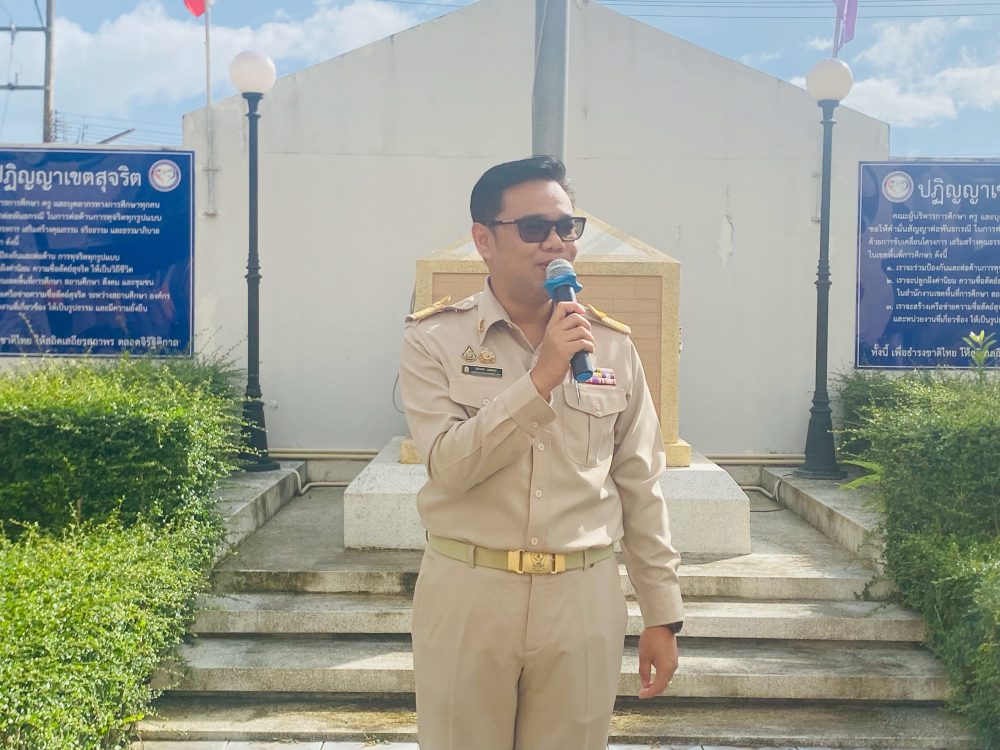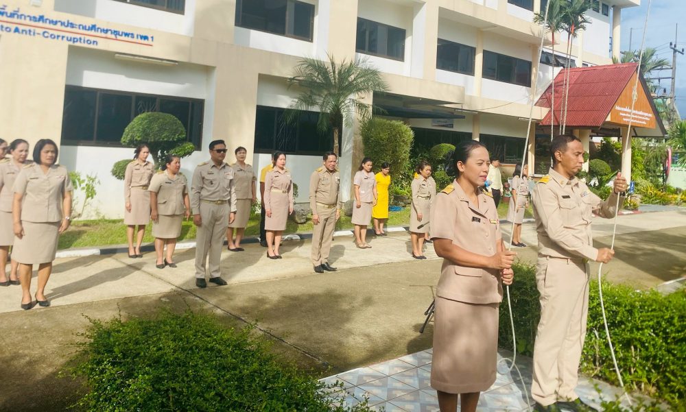 สพป.ชุมพร เขต 1 ร่วมกิจกรรมเข้าแถวเคารพธงชาติ บูชาพระรัตนตรัย และกล่าวคำปฏิญญาเขตสุจริต