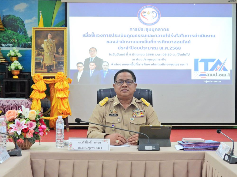 วันที่ 9 มิถุนายน 2568 เวลา 09.30 น. ดร.ศักดิ์สิทธิ ์ เเร่ทอง ผอ.สพป.ชุมพร เขต 1 เป็นประธานในการประชุมบุคลากรเพื่อชี้แจงการประเมินคุณธรรมและความโปร่งใสในการดำเนินงานของสำนักงานเขตพื้นที่การศึกษาออนไลน์ (Integrity and Transparency Assessment Online : ITA Online) ประจำปีงบประมาณ พ.ศ.2568 ครั้งที่ 1/2568