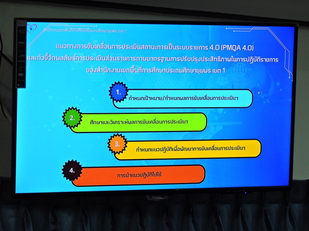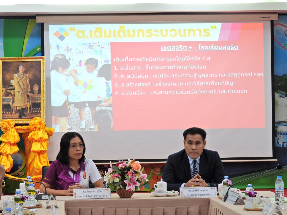 ดร.ศักดิ์สิทธิ์ แร่ทอง ผอ. สพป.ชุมพร เขต 1 มอบหมายให้ ดร.อนุสิทธ์ นามโยธา รอง ผอ. สพป.ชุมพร เขต 1 พร้อมด้วยผู้อำนวยการทุกกลุ่ม/หน่วย และผู้ที่เกี่ยวข้อง ร่วมต้อนรับคณะศึกษาดูงานจาก สพป. ประจวบคีรีขันธ์ เขต 1 ซึ่งมาศึกษาดูงานแลกเปลี่ยนเรียนรู้ ในเรื่องการขับเคลื่อนคุณธรรมและความโปร่งใสในการดำเนินงาน (itA) , โรงเรียนคุณภาพ 1 อำเภอ 1 โรงเรียนคุณภาพ และการประเมินสถานะของหน่วยงานในการเป็นระบบราชการ 4.0 ( PMQA) ณ ห้องประชุม ขุนกระทิง ชั้น 3 สำนักงานเขตพื้นที่การศึกษาประถมศึกษาชุมพร เขต 1