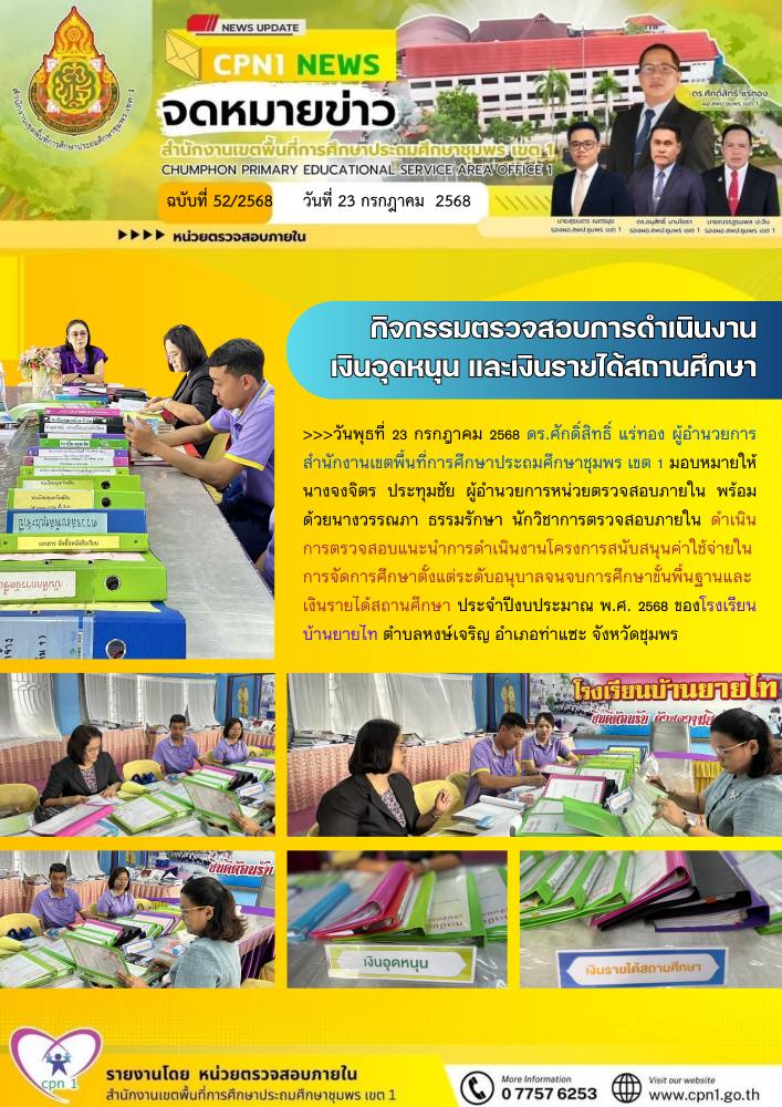 กิจกรรมตรวจสอบการดำเนินงาน เงินอุดหนุน และเงินรายได้สถานศึกษา 23 กรกฎาคม 2568 หน่วยตรวจสอบภายใน สพป.ชพ.1 ข่าวและกิจกรรม สพป.ชพ.1, ข่าวและกิจกรรมหน่วยตรวจสอบภายใน FacebookFacebookXXLINELine หน่วยตรวจสอบภายใน สพป.ชพ.1