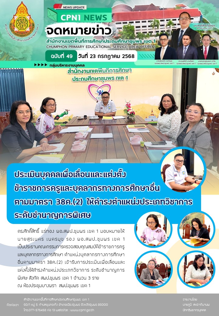 ประเมินบุคคลเพื่อเลื่อนและแต่งตั้ง ข้าราชการครูและบุคลากรทางการศึกษาอื่น ตามมาตรา 38ค.(2) ให้ดำรงตำแหน่งประเภทวิชาการ ระดับชำนาญการพิเศษ 23 กรกฎาคม 256823 กรกฎาคม 2025 กลุ่มบริหารงานบุคคล สพป.ชพ.1 ข่าวและกิจกรรม สพป.ชพ.1, ข่าวและกิจกรรมกลุ่มบริหารงานบุคคล FacebookFacebookXXLINELine กลุ่มบริหารงานบุคคล สพป.ชพ.1