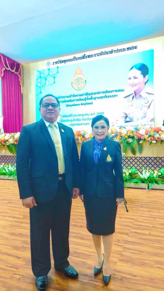 >>>วันที่ 24 กรกฎาคม 2568 เวลา 13.00 น. ดร.ศักดิ์สิทธิ์ แร่ทอง ผู้อำนวยการสำนักงานเขตพื้นที่ การศึกษาประถมศึกษาชุมพร เขต 1 พร้อมด้วย นางวราณี เดชค้ำ ผู้อำนวยการกลุ่มบริหารงานการเงินและสินทรัพย์ เข้าร่วมประชุมชี้แจงทำความเข้าใจการเช่าอุปกรณ์ การเรียนการสอนภายใต้โครงการ ส่งเสริมการเรียนรู้ขั้นพื้นฐานทุกที่ทุกเวลา (Anywhere Anytime) ณ หอประชุมโรงเรียนราชวินิต กรุงเทพฯ โดยมี ศาสตราจารย์ ดร.นฤมล ภิญโญสินวัฒน์ รัฐมนตรีว่าการกระทรวงศึกษาธิการ เป็นประธานในการประชุม โดยมีวัตถุประสงค์เพื่อชี้แจงเก่ี่ยวกับการเช่าใช้อุปกรณ์การเรียนการสอน ภายใต้โครงการส่งเสริมการเรียนรู้ขั้นพื้นฐานทุกที่ทุกเวลา (Anywhere Anytime)