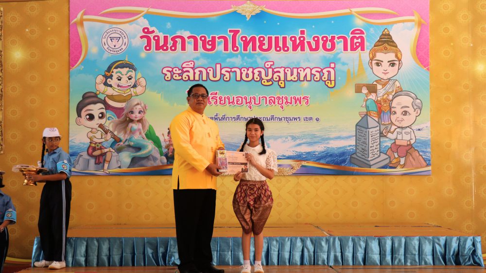 >>>วันที่ 31 กรกฎาคม 2568 เวลา 09.00 น. ดร.ศักดิ์สิทธิ์ แร่ทอง ผู้อำนวยการสำนักงานเขตพื้นที่การศึกษาประถมศึกษาชุมพร เขต 1 เป็นประธาน ในพิธีเปิดกิจกรรมวันภาษาไทยแห่งชาติ ระลึกปราชญ์สุนทรภู่ ประจำปีการศึกษา 2568 ณ โรงเรียนอนุบาลชุมพร โดยกิจกรรมนี้จัดขึ้นเพื่อให้นักเรียนทราบถึงประวัติ ผลงาน และเกียรติคุณของสุนทรรโวหาร (ภู่) หรือสุนทรภู่ ปลูกฝังคุณลักษณะอันพึงประสงค์ ให้เป็นผู้รักความเป็นไทย เห็นคุณค่าและตระหนักในการพูด อ่าน เขียน และใช้ภาษาไทยอย่างถูกต้อง