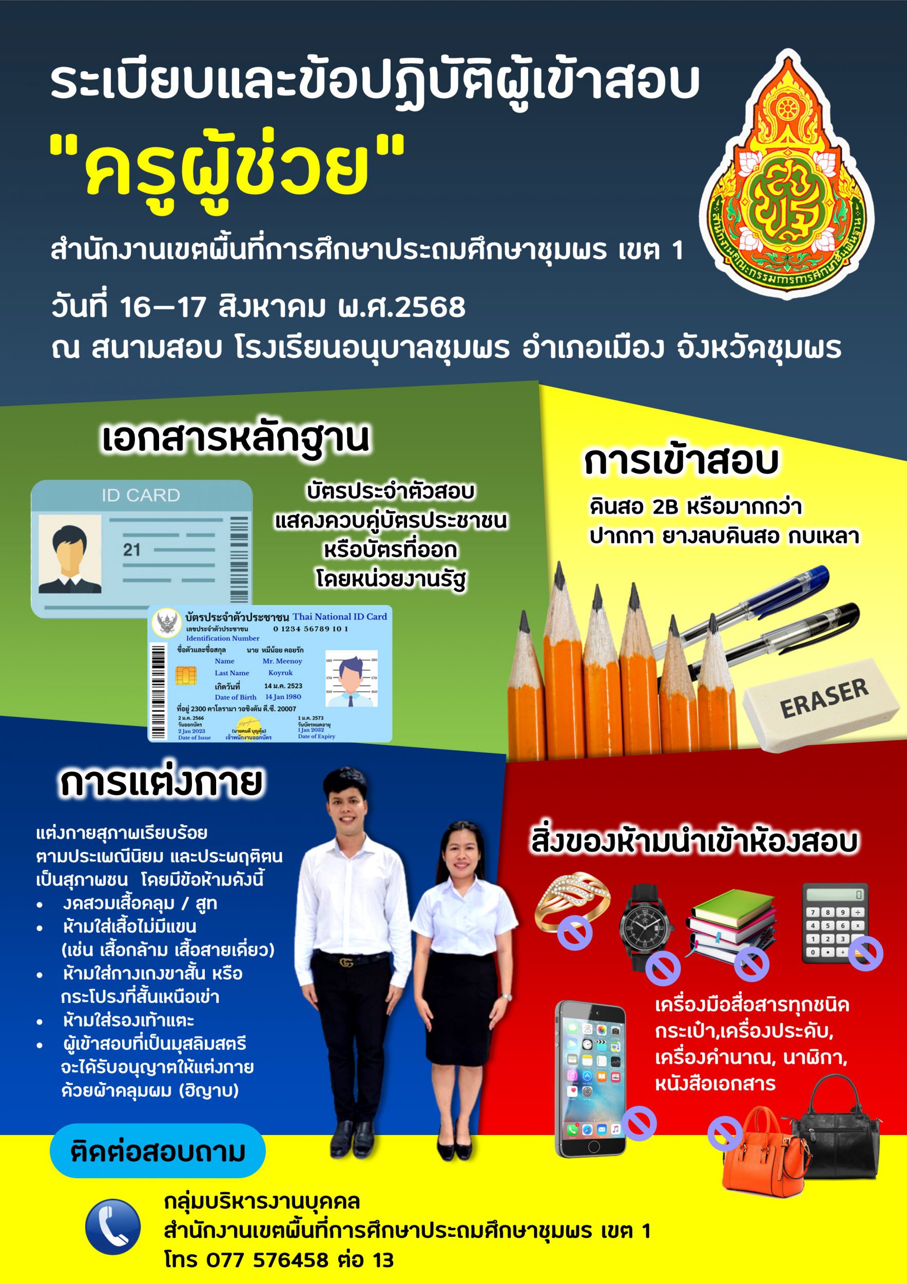 ระเบียบและข้อปฏิบัติผู้เข้าสอบการแข่งขันเพื่อบรรจุและแต่งตั้งบุคคลเข้ารับราชการเป็นข้าราชการครูและบุคลากรทางการศึกษา ตำแหน่งครูผู้ช่วย สังกัด สพฐ. ปี พ.ศ.2568 01 สิงหาคม 256801 สิงหาคม 2025 กลุ่มบริหารงานบุคคล สพป.ชพ.1 การบรรจุและแต่งตั้งบุคลากร, ข่าวและกิจกรรม สพป.ชพ.1, ข่าวและกิจกรรมกลุ่มบริหารงานบุคคล FacebookFacebookXXLINELine กลุ่มบริหารงานบุคคล สพป.ชพ.1