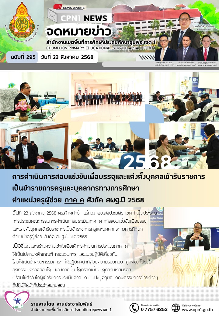 การดำเนินการสอบแข่งขันเพื่อบรรจุและแต่งตั้งบุคคลเข้ารับราชการ เป็นข้าราชการครูและบุคลากรทางการศึกษา ตำแหน่งครูผู้ช่วย ภาค ค สังกัด สพฐ.ปี 2568 23 สิงหาคม 256823 สิงหาคม 2025 กลุ่มบริหารงานบุคคล สพป.ชพ.1 ข่าวและกิจกรรม สพป.ชพ.1, ข่าวและกิจกรรมกลุ่มบริหารงานบุคคล FacebookFacebookXXLINELine กลุ่มบริหารงานบุคคล สพป.ชพ.1